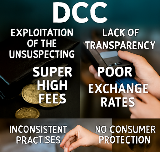 Welcome to the world of Dynamic Currency Conversion (DCC)—a “service” that’s marketed as helpful but often functions like a legal scam. It is offered at point-of-sale terminals, ATMs, and during online shopping experiences.