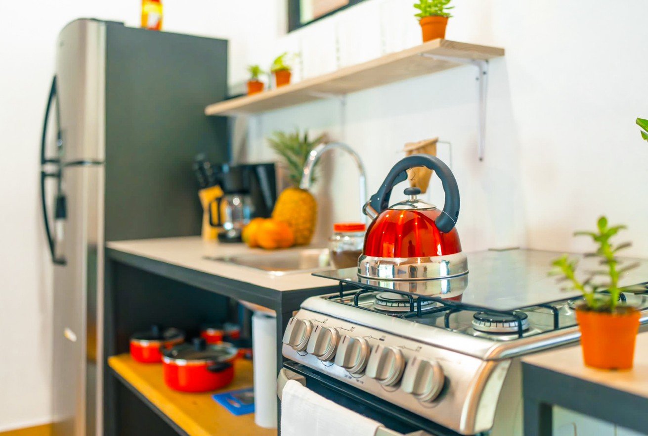 1-Bedroom Home: A two-story residence with a kitchen downstairs and a spacious bedroom above.