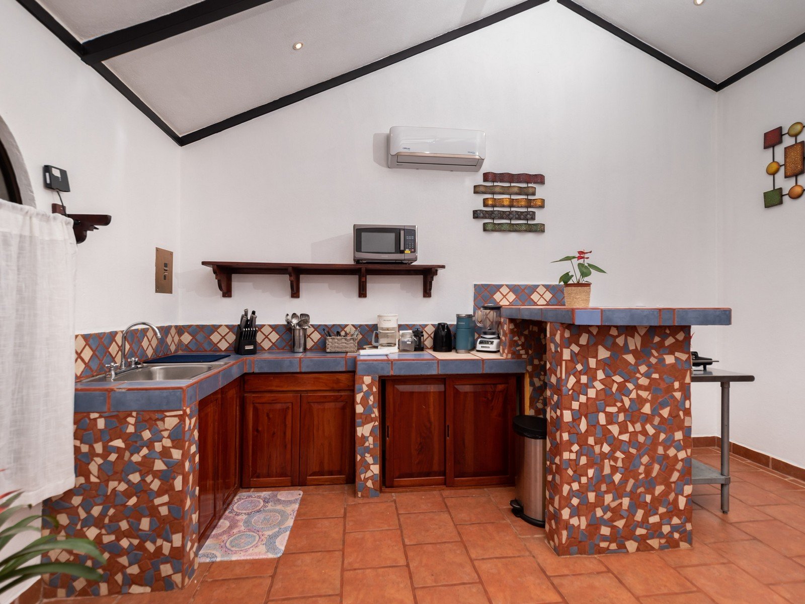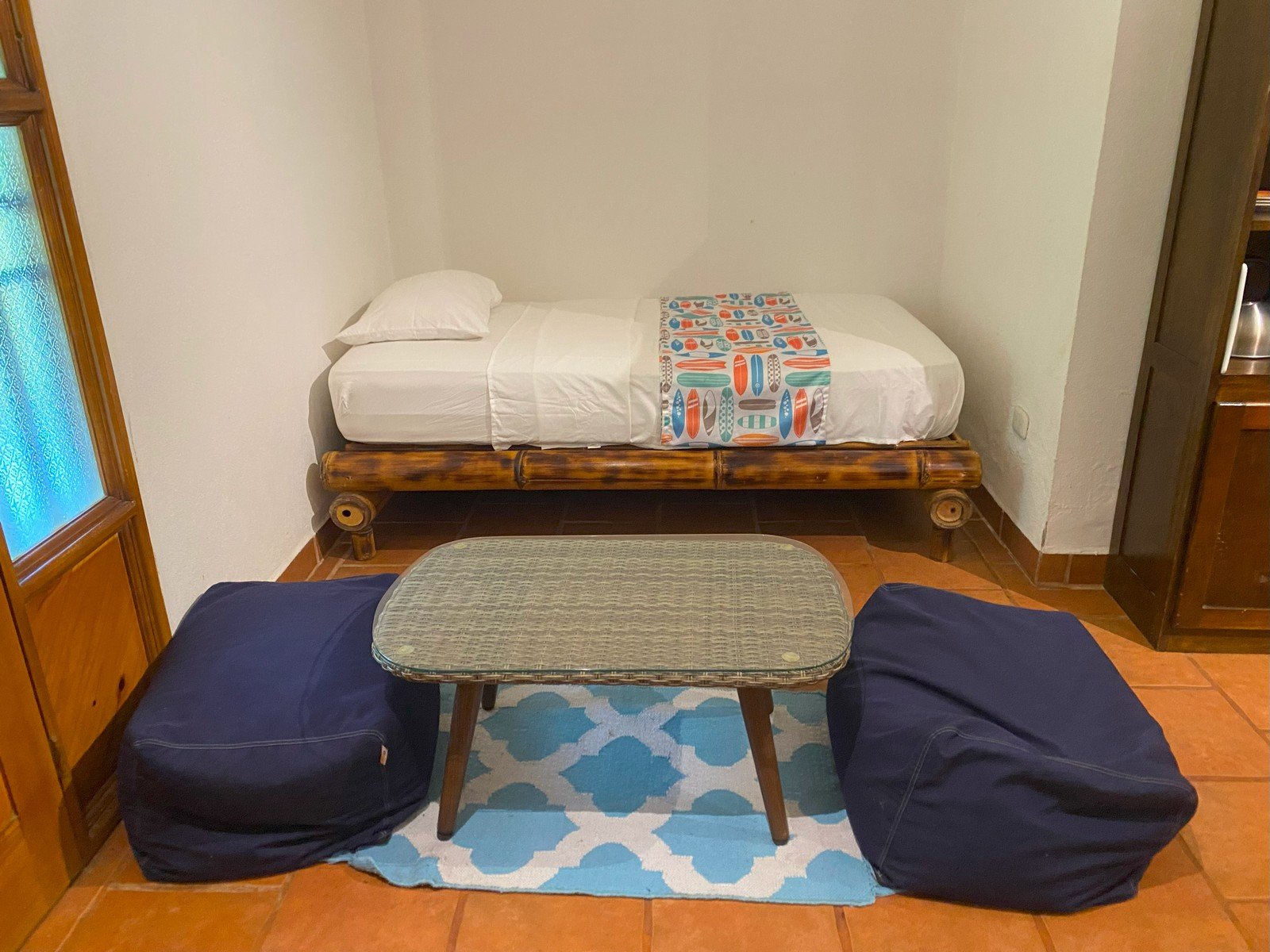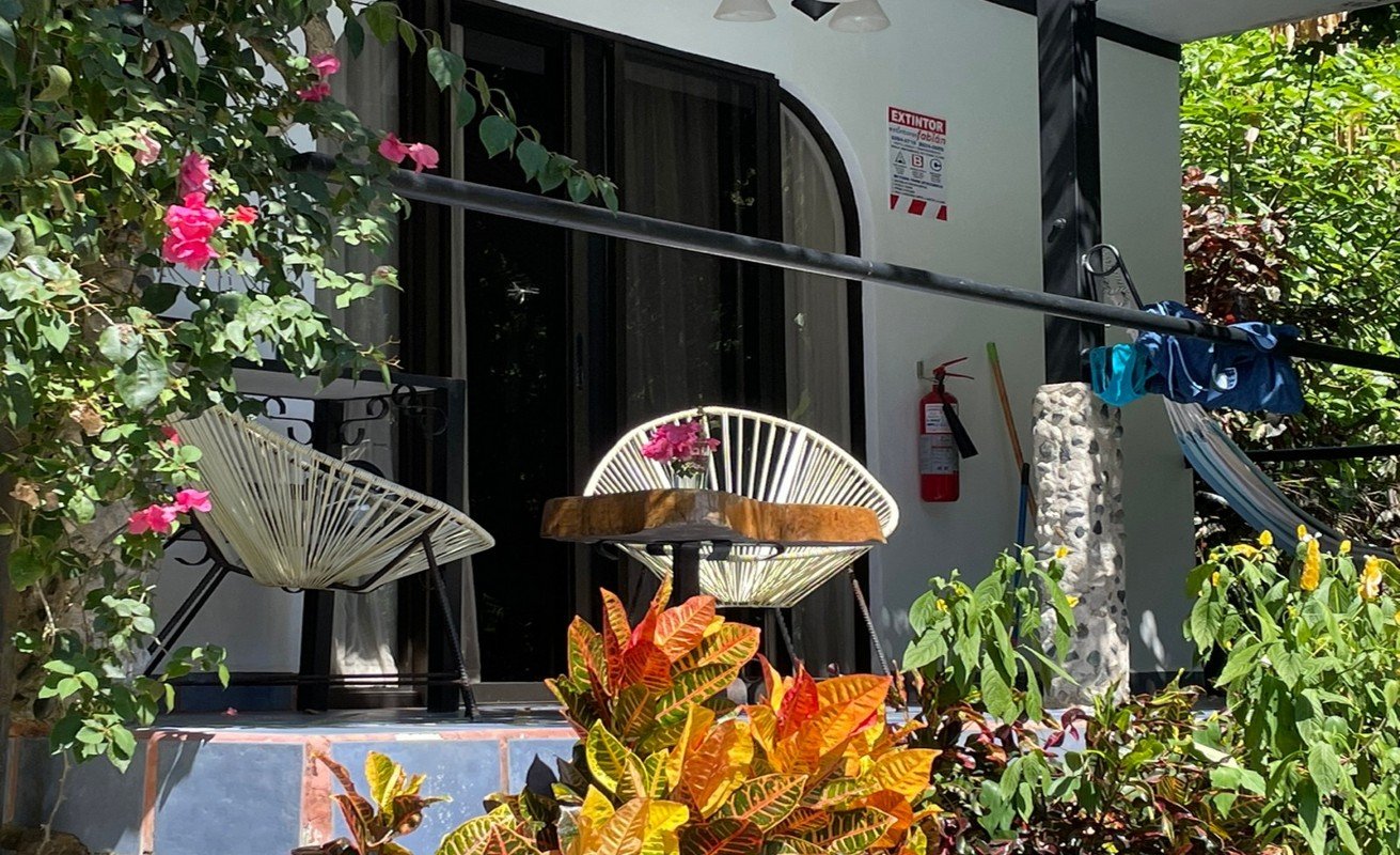 There are six fully equipped and uniquely designed villas on the property. Each one includes its own kitchen, indoor living area, bathroom, air conditioning, and private patio. All the villas are different in size and layout, offering a mix of spaces ideal for singles, couples, families, or groups, sleeping between 2 and 7 guests depending on the villa. They are comfortably furnished and ready to host, with details that balance privacy and connection to the shared spaces.