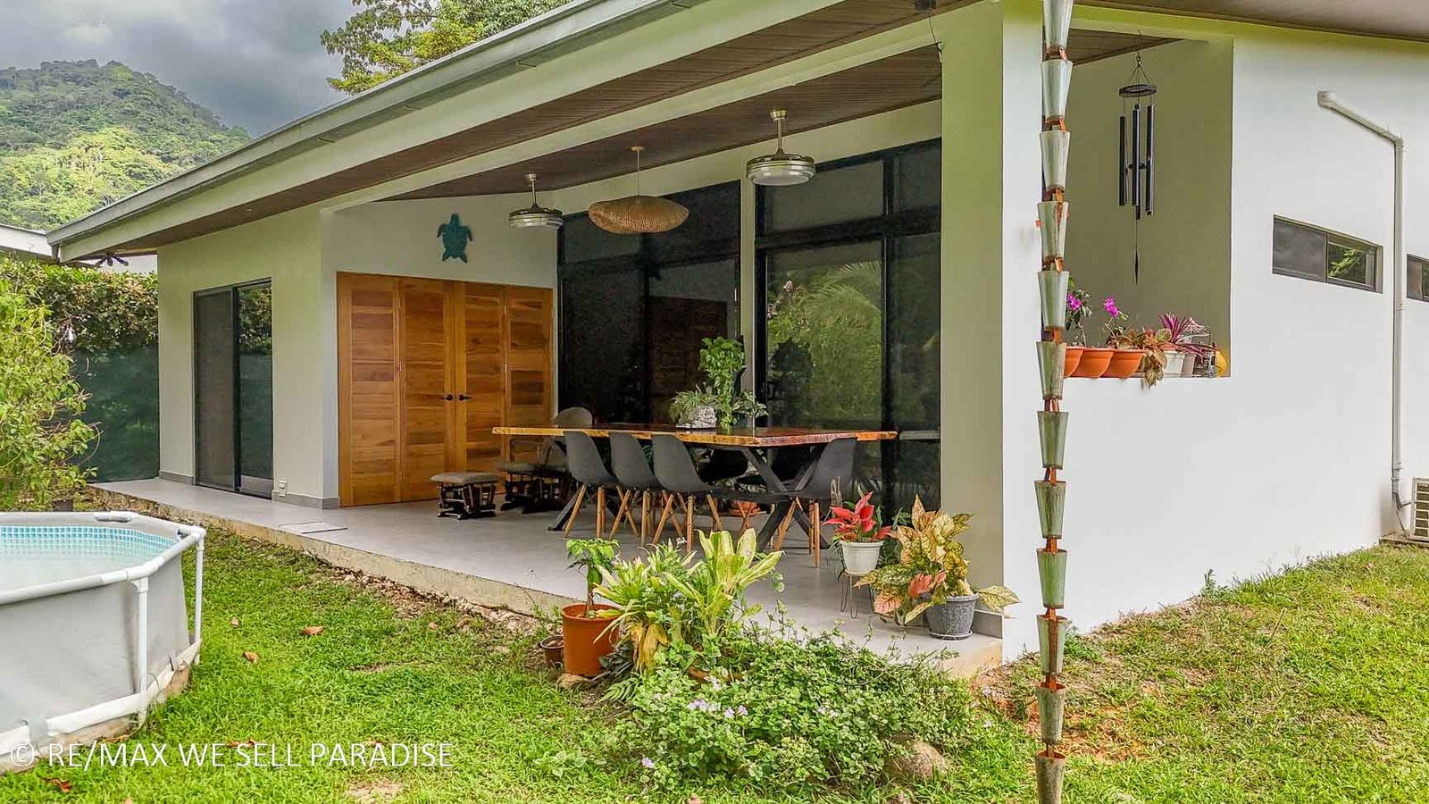The property is easily accessed via a scenic 3 km drive from the Costanera Sur Highway. Turning off the highway, you will enter the main road, Calle Principal, and cross a brand-new bridge at the entrance to Ojochal. The route then winds through the town and surrounding neighborhoods, businesses, jungles & rivers. You simply stay on Calle Principal until you reach the house – conveniently, this is your street. Two gates welcome you home, with one leading to the house and the other to the backyard area.