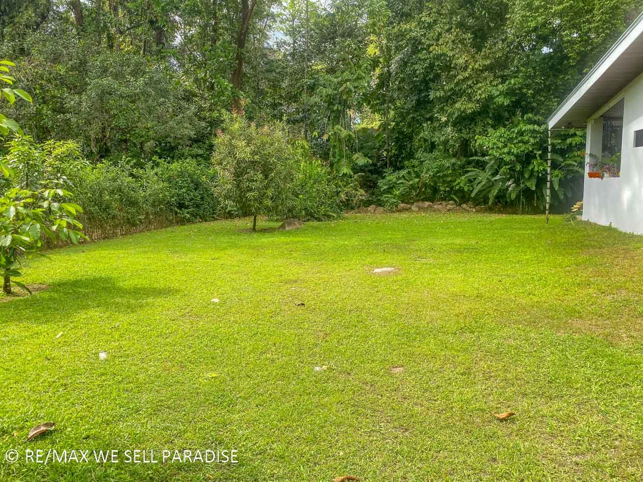 The land stretches between Calle Principal and the mountain river. The home occupies a corner of the property with the rest of the land covered by a manicured lawn, fruit trees, potted plants and a jungle river oasis. The river forms the western border of the land while the other three sides are marked by a beautiful natural ‘living fence’ hedge.