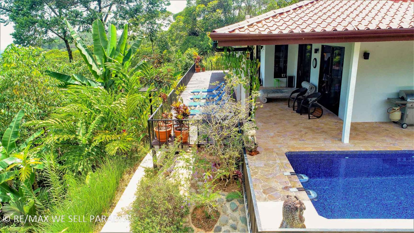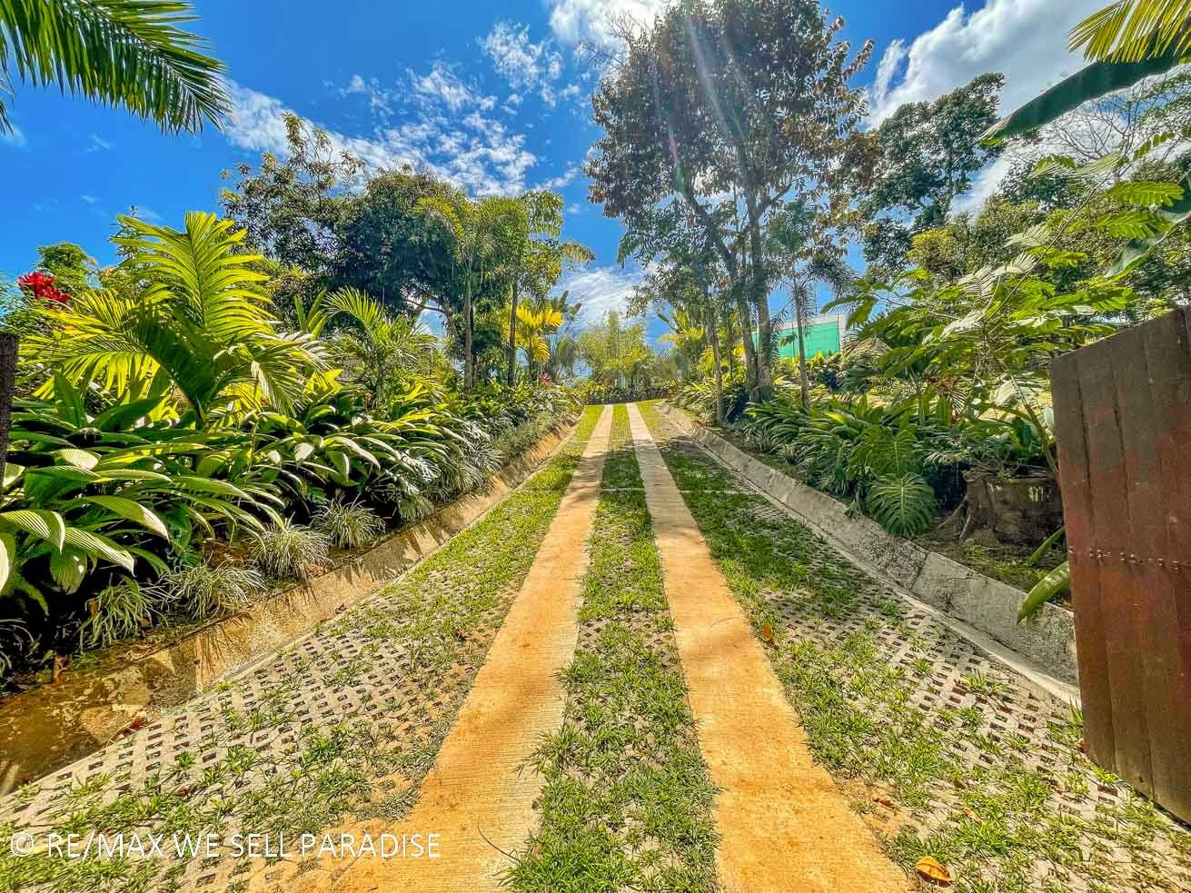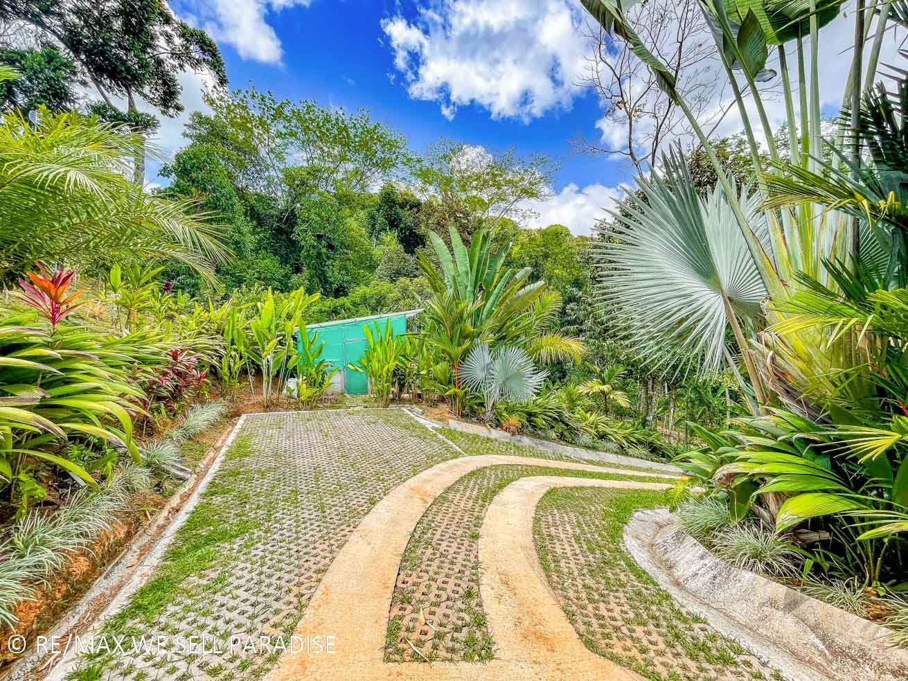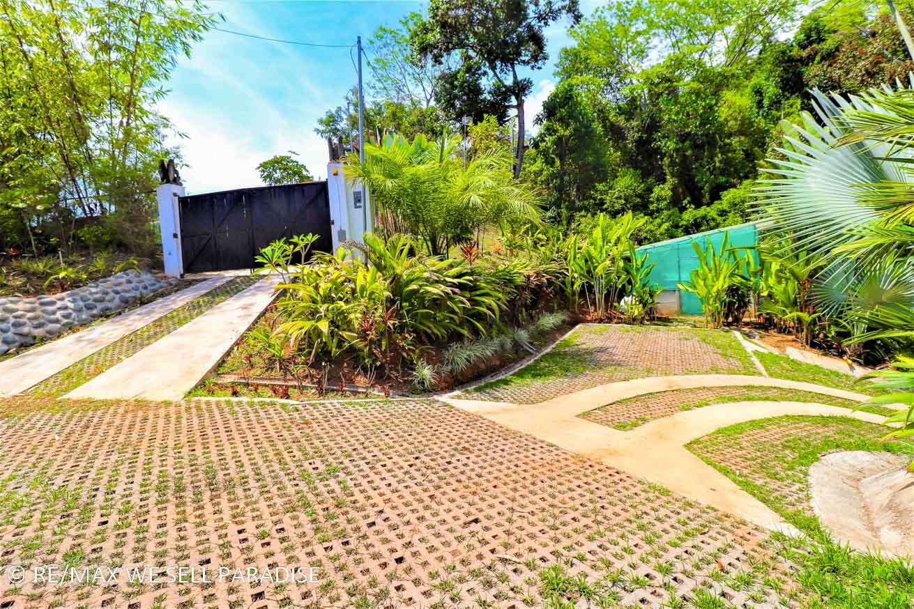 From the Costanera highway, a 5km drive leads you through lush jungles, over racing crystal rivers, and around sharp ridges that bless with wonderful views of the mountains, Pacific Ocean and sprawling rainforests. You arrive at a secure gate, one of the two entry gates, which opens onto a climbing driveway with concrete strips and grass pavers. Beautifully sculpted tropical parklands surround the roadway as it leads toward the home and its nearby carport. Another carport sits a short distance away. A second entrance gate opens almost adjacent to the house.