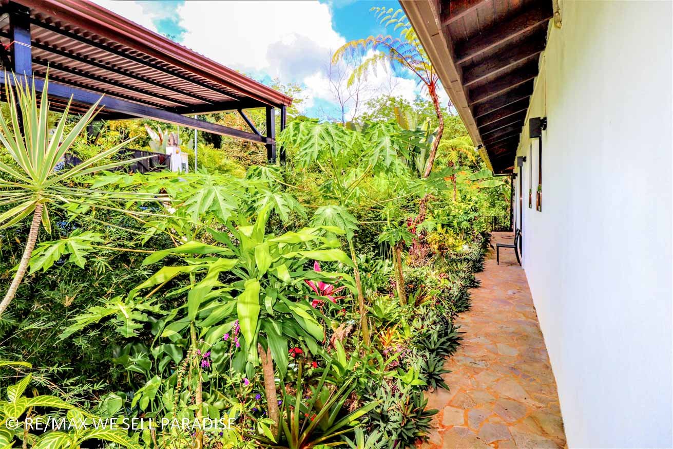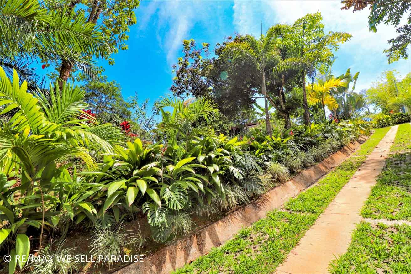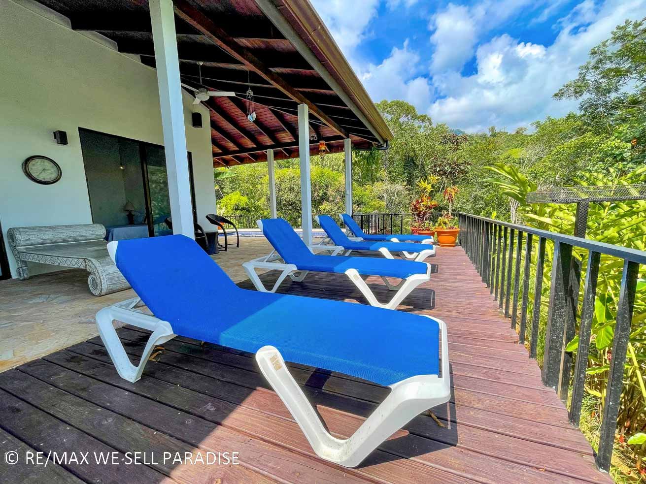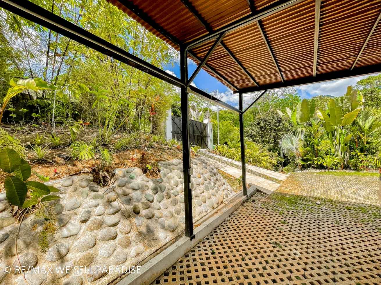 From the Costanera highway, a 5km drive leads you through lush jungles, over racing crystal rivers, and around sharp ridges that bless with wonderful views of the mountains, Pacific Ocean and sprawling rainforests. You arrive at a secure gate, one of the two entry gates, which opens onto a climbing driveway with concrete strips and grass pavers. Beautifully sculpted tropical parklands surround the roadway as it leads toward the home and its nearby carport. Another carport sits a short distance away. A second entrance gate opens almost adjacent to the house.