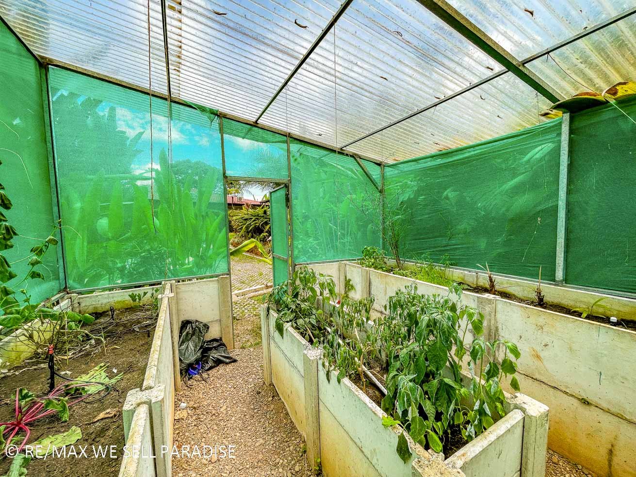 The estate is beautifully landscaped with hundreds of fruit trees, a tilapia pond at the orchard’s center, and a seasonal creek that reveals a charming waterfall for much of the year. A self‑contained greenhouse with raised concrete beds and programmable irrigation sits just steps from the home—ideal for year‑round gardening. Between the carport and the house lies a lush orchid garden surrounding a serene koi pond, home to tropical fish and two turtles.