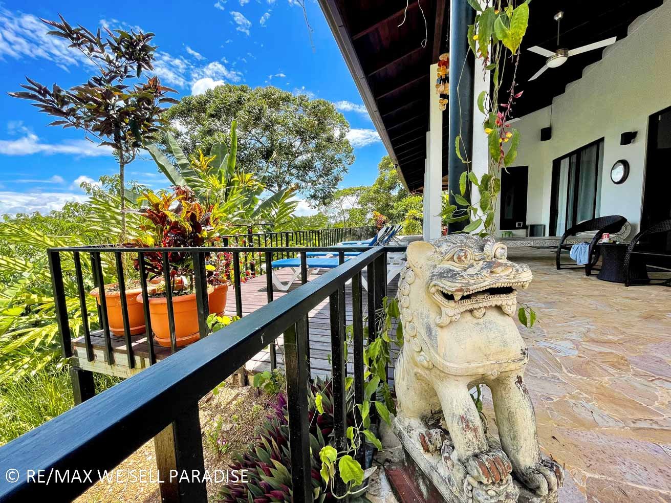 Two sides of the home host covered patios designed to take full advantage of the views and the green jungle scenery an arms’ reach away.