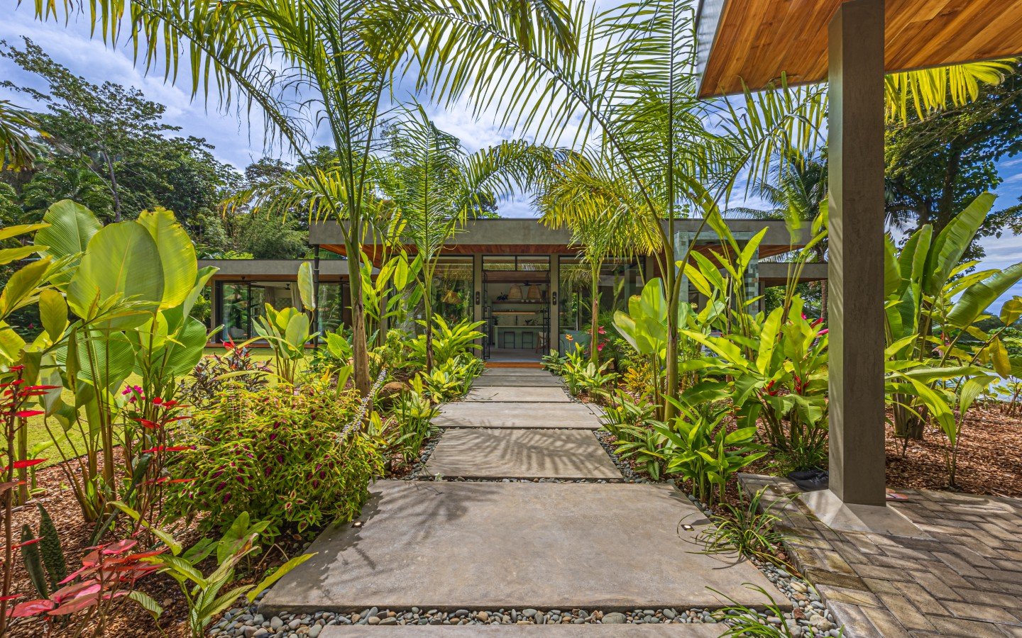 Nestled on 1.6 acres in the mountains of Playa Hermosa, this property offers complete privacy and tranquility, located on a private road just off the main public road. Upon arrival, you’re welcomed by a remote-controlled teak gate and lushly landscaped gardens filled with tropical plants and fruit trees that attract wildlife daily.