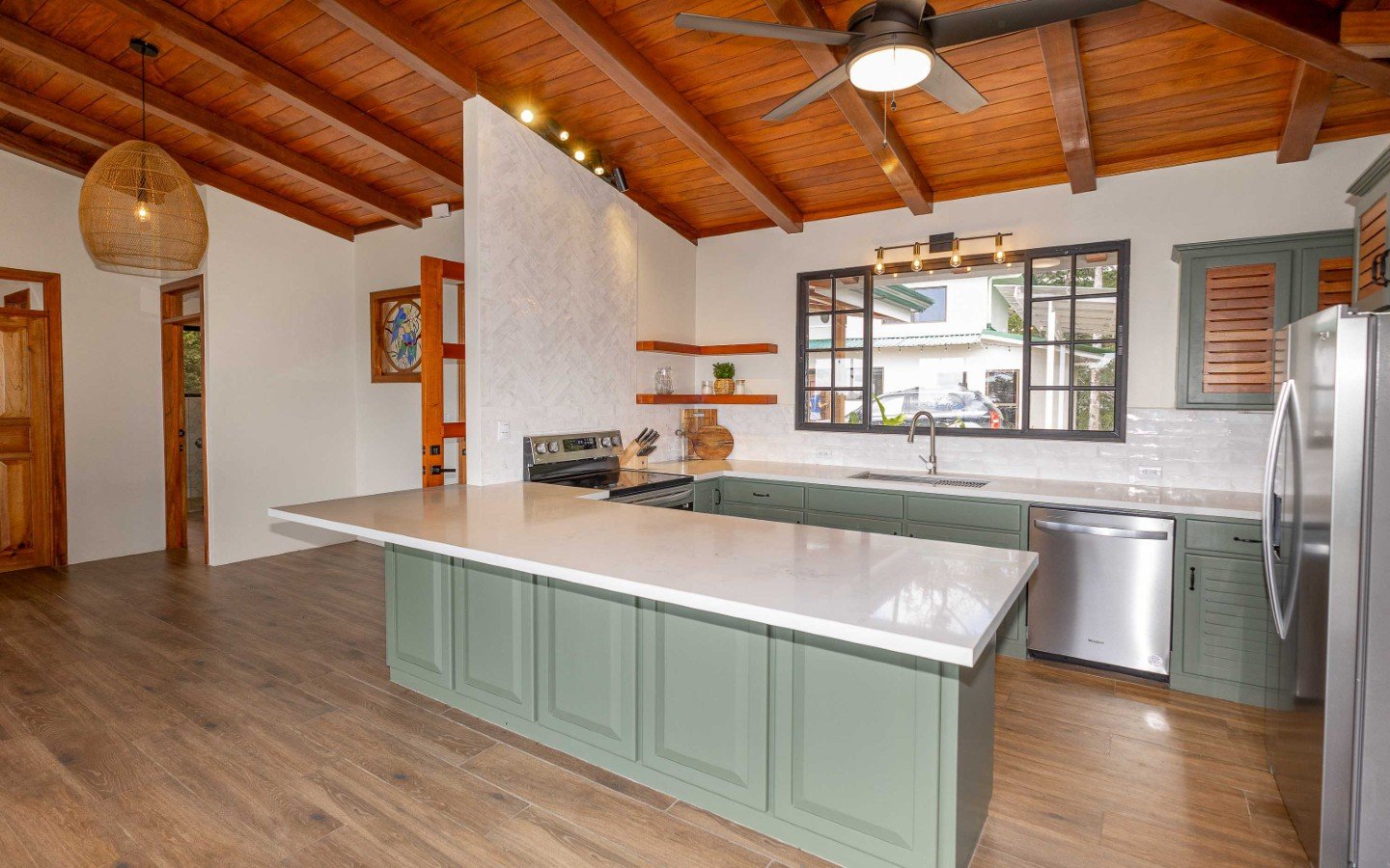 The property’s outdoor spaces are a tropical paradise. A large, recently updated pool surrounded by lush vegetation provides total privacy. The expansive pool patio is perfect for sun-soaked afternoons and enjoying cool ocean breezes. With a fenced perimeter, a secure entry gate, and covered parking for up to five vehicles, Casa Encantador ensures peace of mind.