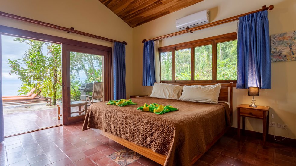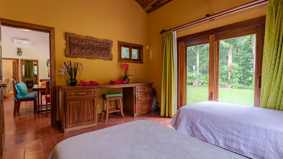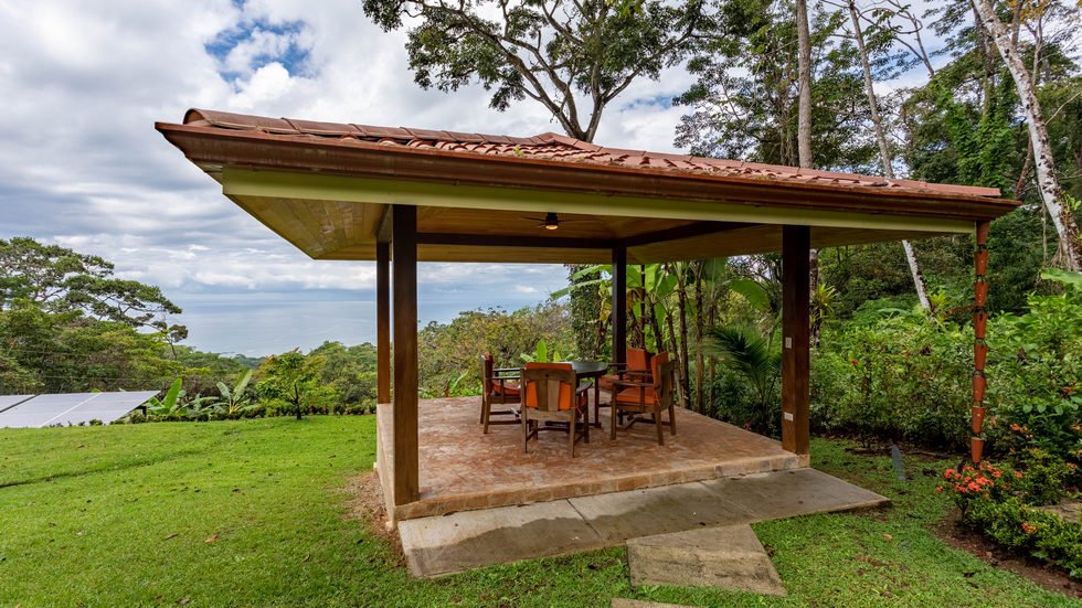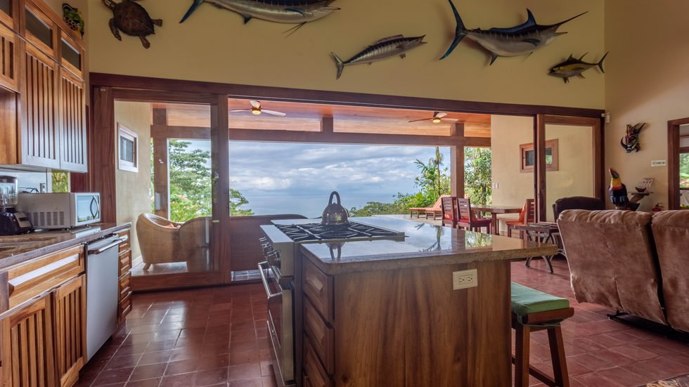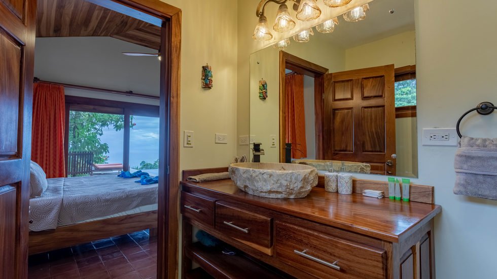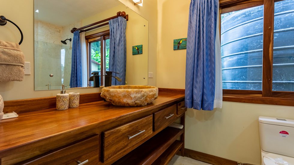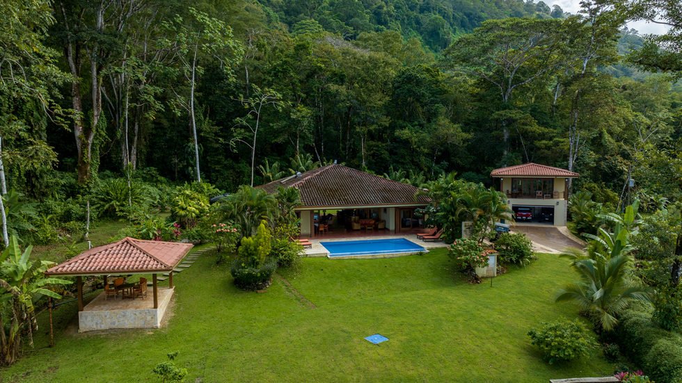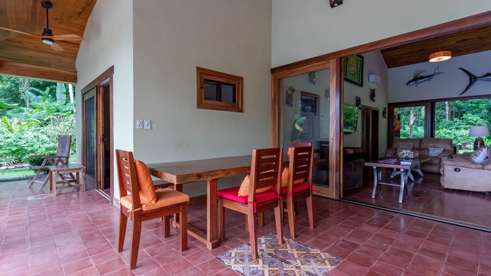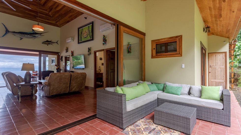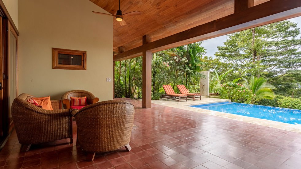 The views from the western side of the home are dominated by blue hues with a tropical pool overlooking the Pacific Ocean. To the east, the setting completely transforms into an emerald green rainforest setting with old-growth trees and a natural freshwater creek flowing in the backyard. With nothing but rainforest-covered mountainside behind the property, here you will enjoy complete privacy – other than the Howler Monkeys and Toucans that are regularly seen here.