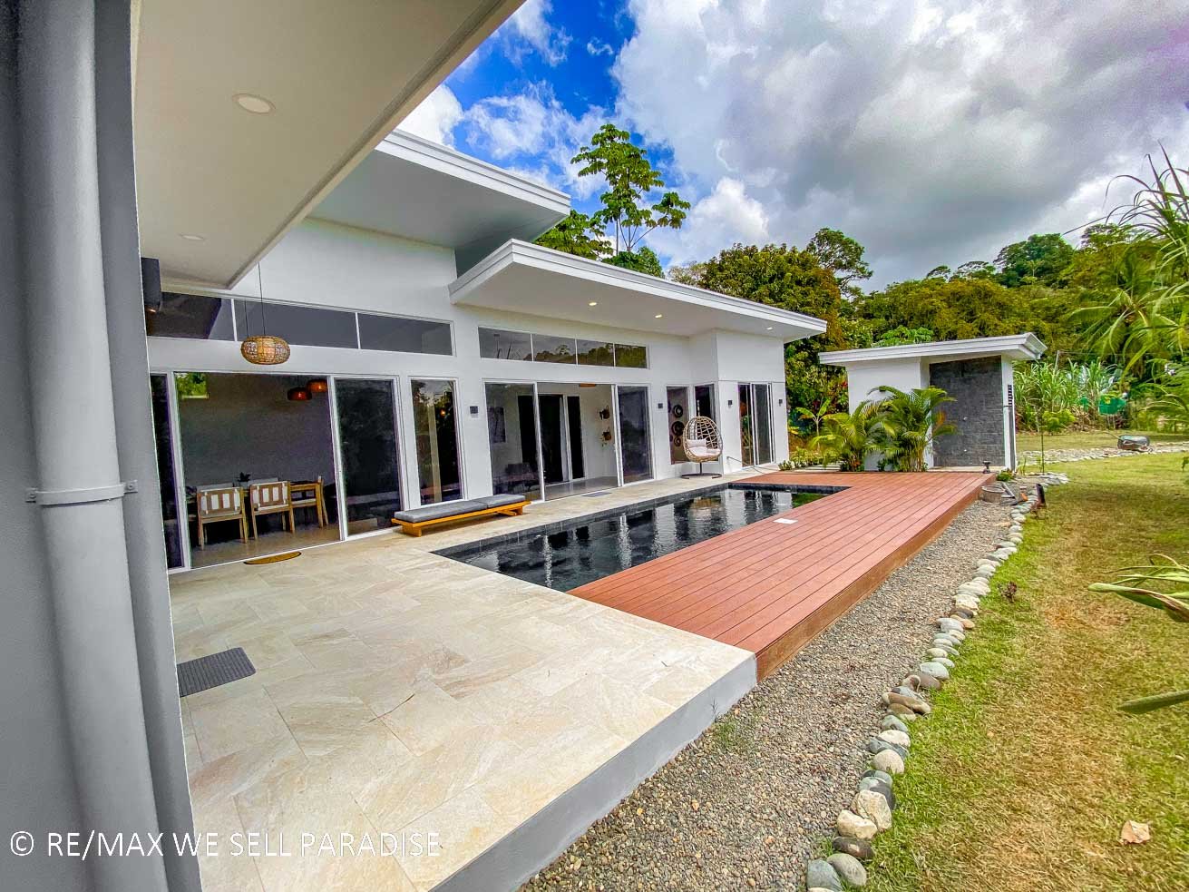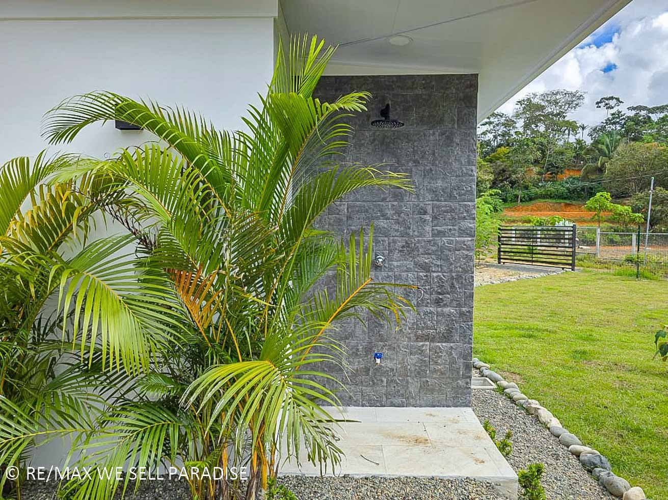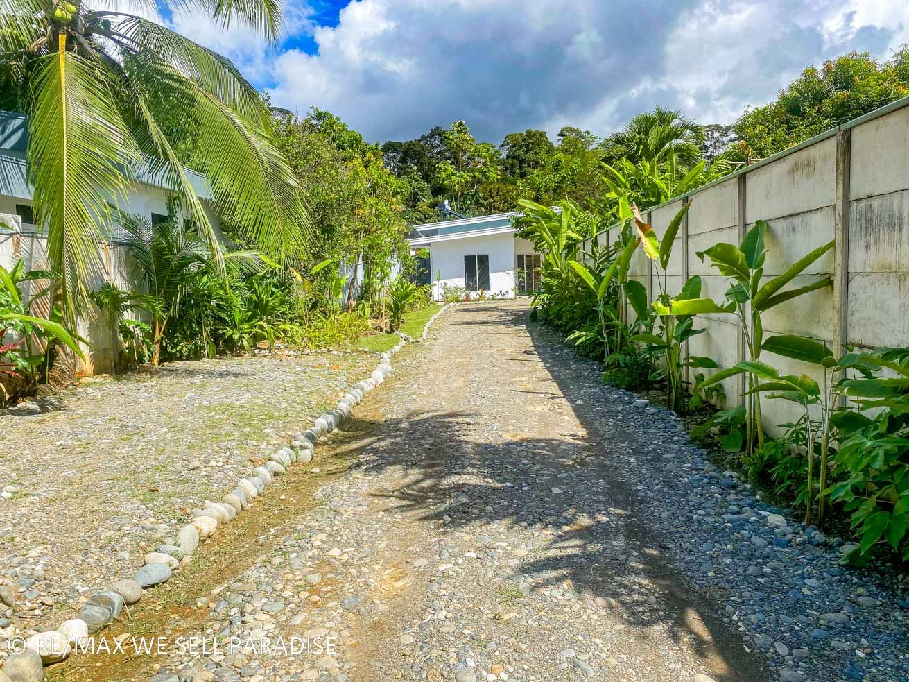 From the Costanera Highway—the main route connecting San José with the Southern Pacific—a quick 800m drive brings you to the front gates. The property enjoys dual access: one entrance from Calle Mariposario and another from a quiet rear easement. Set back from the road, the home feels very peaceful and private.