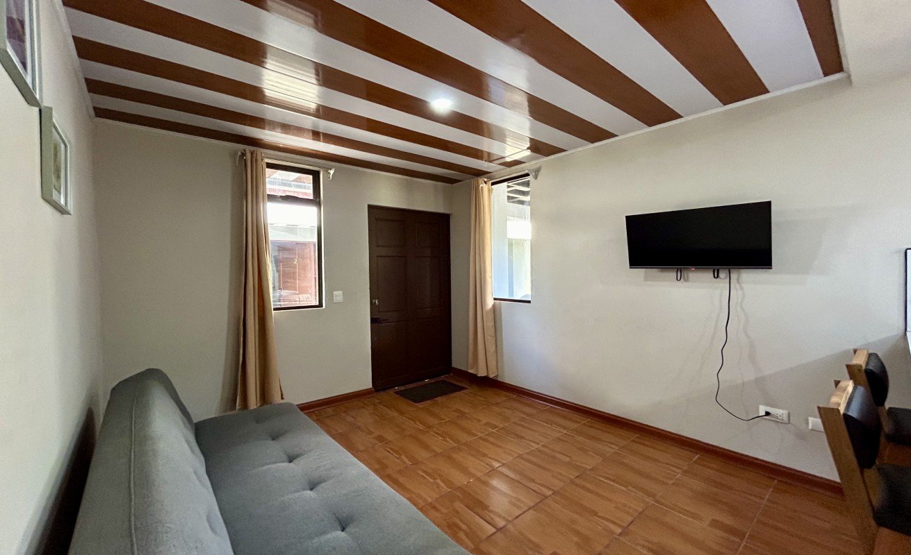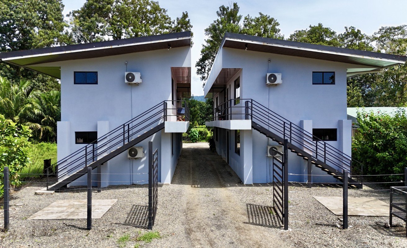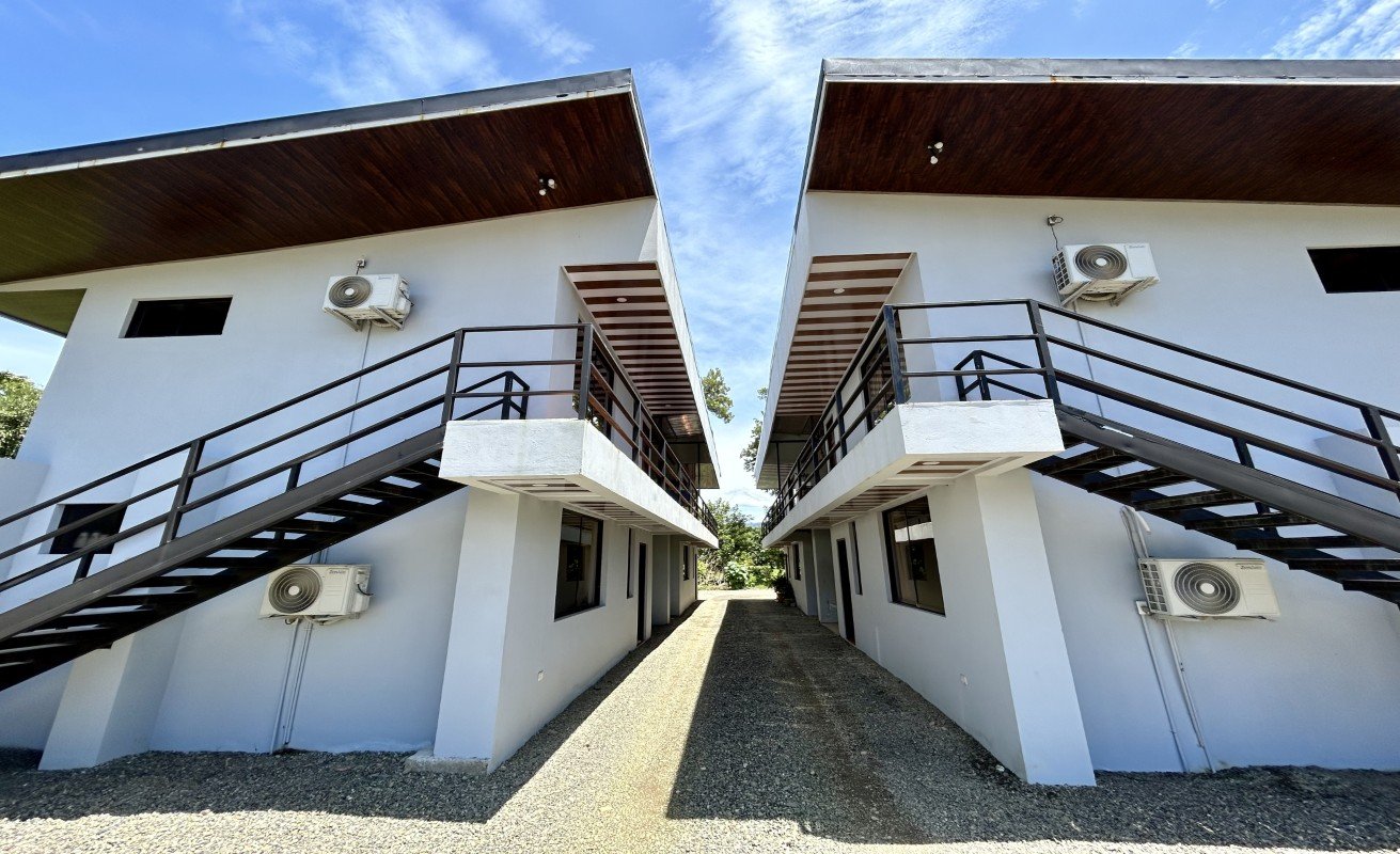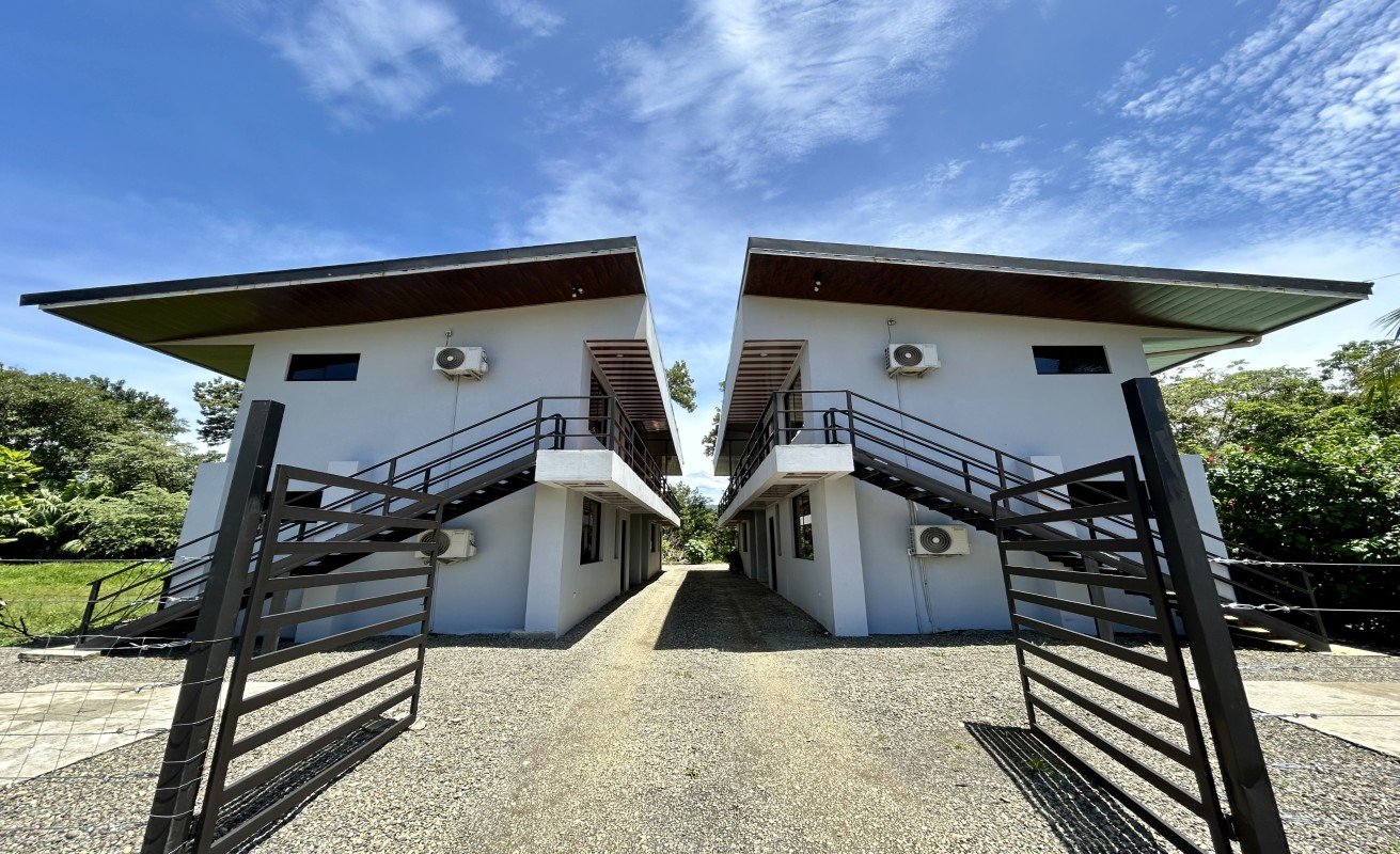 This property consists of 8 apartments, with 4 on the lower level and 4 on the upper level. Two of the apartments are offered fully furnished and ready to be rented, while the others come equipped with a refrigerator and induction stove. All units have high-speed internet provided by fiber optics, making them perfect for visitors who work remotely while enjoying the beauty of Costa Rica. Each unit features 1 bedroom, 1 bathroom, a living room, and a kitchen separated by a small island. The units have sliding windows and air conditioning in both the living room and bedroom. The living room also includes a TV and sofa, adjacent to the kitchen. The bathroom is quite spacious, and the shower is equipped with a water heater.