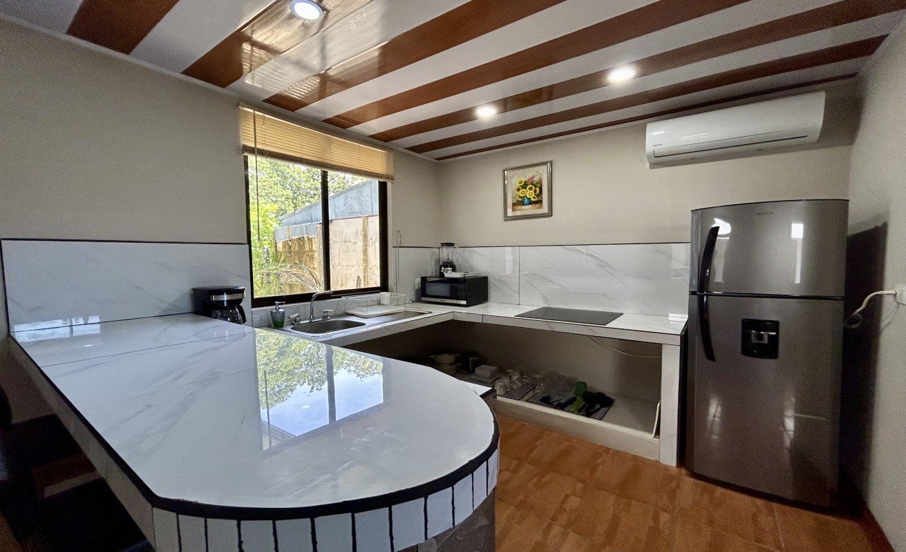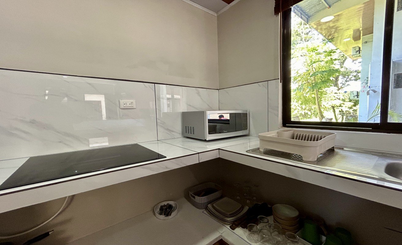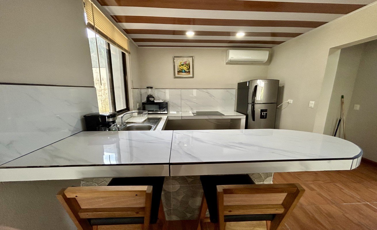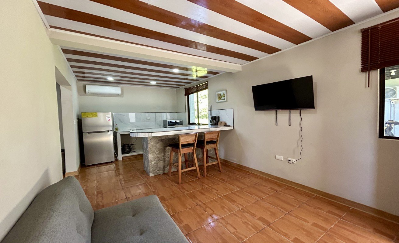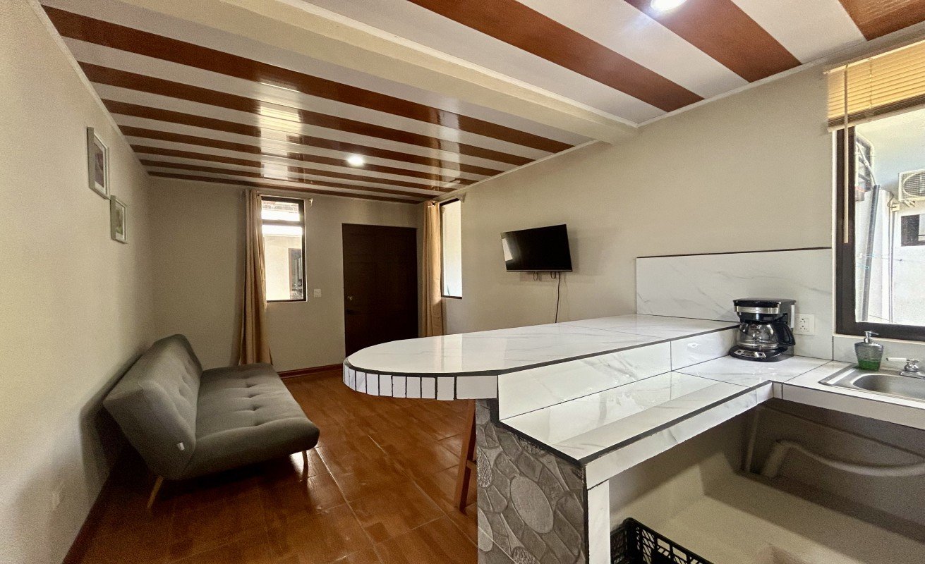 This property consists of 8 apartments, with 4 on the lower level and 4 on the upper level. Two of the apartments are offered fully furnished and ready to be rented, while the others come equipped with a refrigerator and induction stove. All units have high-speed internet provided by fiber optics, making them perfect for visitors who work remotely while enjoying the beauty of Costa Rica. Each unit features 1 bedroom, 1 bathroom, a living room, and a kitchen separated by a small island. The units have sliding windows and air conditioning in both the living room and bedroom. The living room also includes a TV and sofa, adjacent to the kitchen. The bathroom is quite spacious, and the shower is equipped with a water heater.