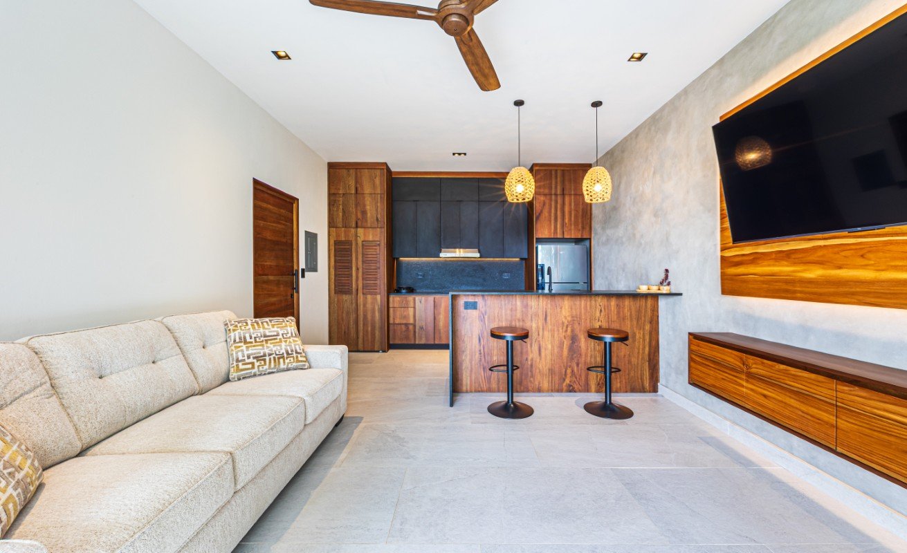 The main home features three luxurious bedroom suites, each with private terraces, ocean views, and ensuite bathrooms—one complete with a deep soaking tub. Natural light and tropical breezes flow through spacious interiors that open seamlessly to outdoor living areas all with sunset ocean views!