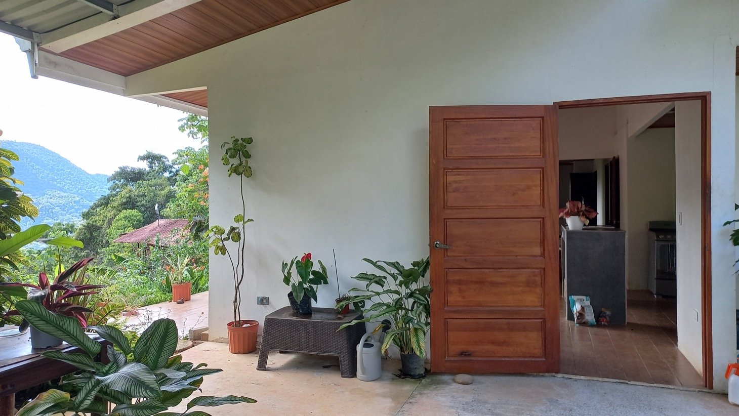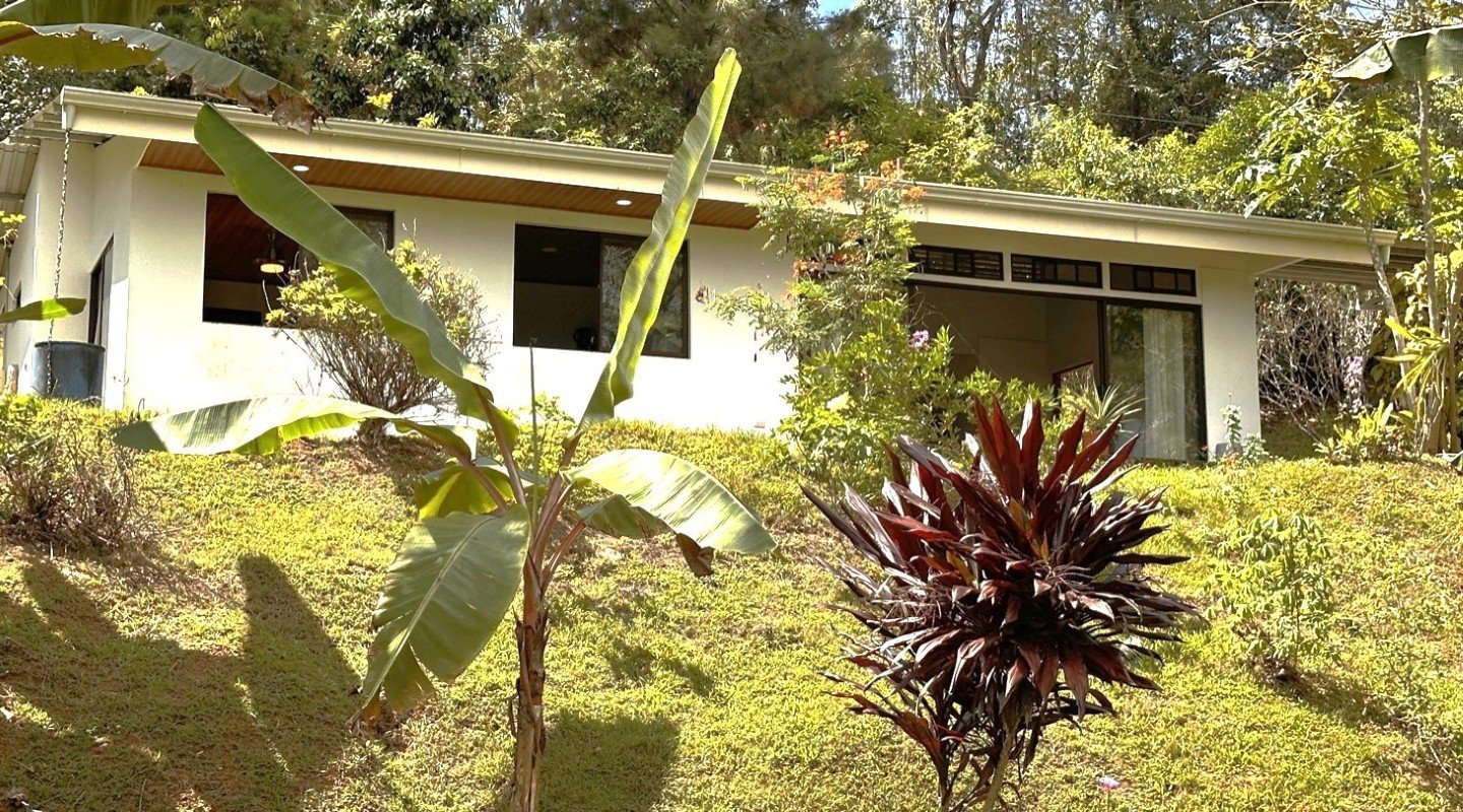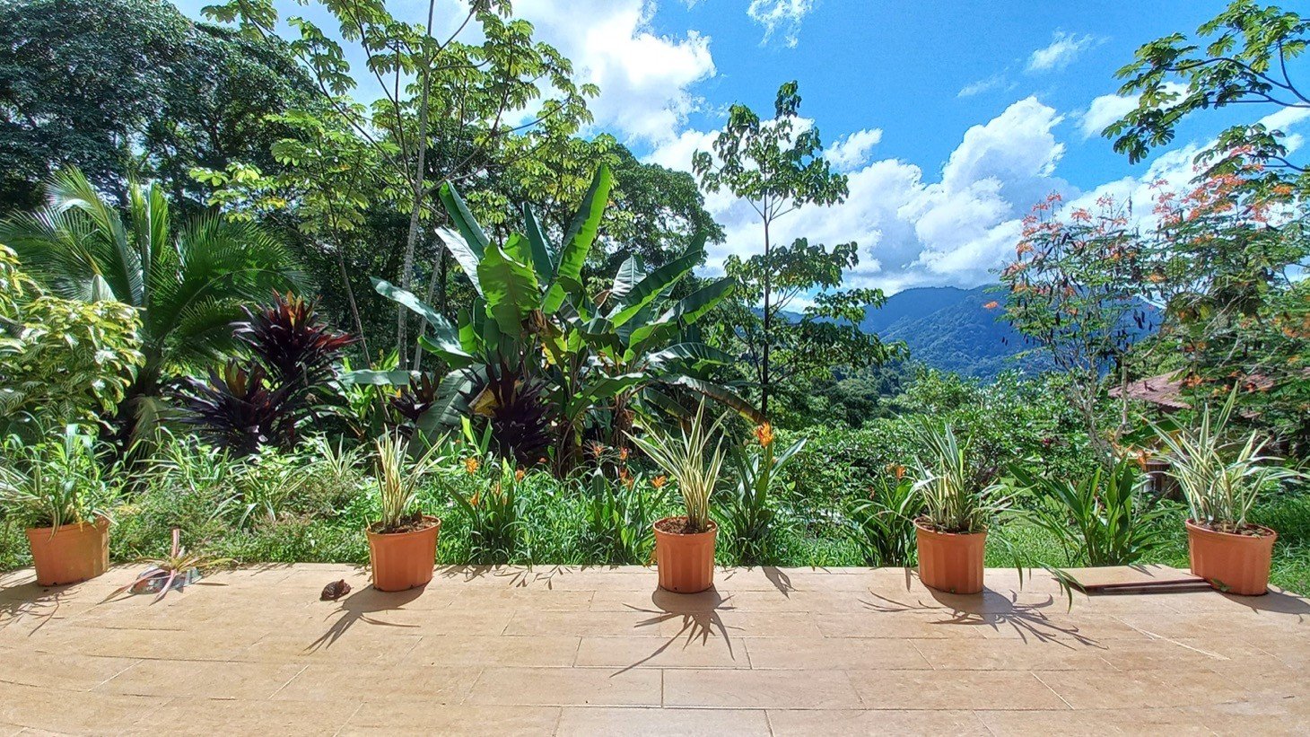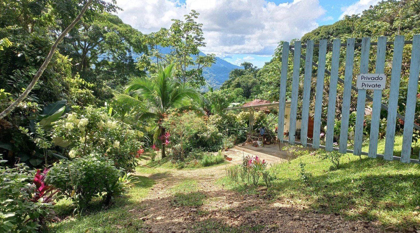 Perched above the village of Tres Rios, this sweet 2 bedroom, 2 bath home has lovely mountain views and fresh breezes 24/7. This 1.5 acre property is a gardeners’ delight, lushly landscaped with a wide variety of flowering bushes and mature fruit trees. The modest home is nicely furnished with fantastic views from the large mountain-facing terrace and master bedroom. A large, attached carport can accommodate a couple of vehicles, while a laundry station on the backside of the home. Plenty of space to string up your hammock or build a yoga deck
