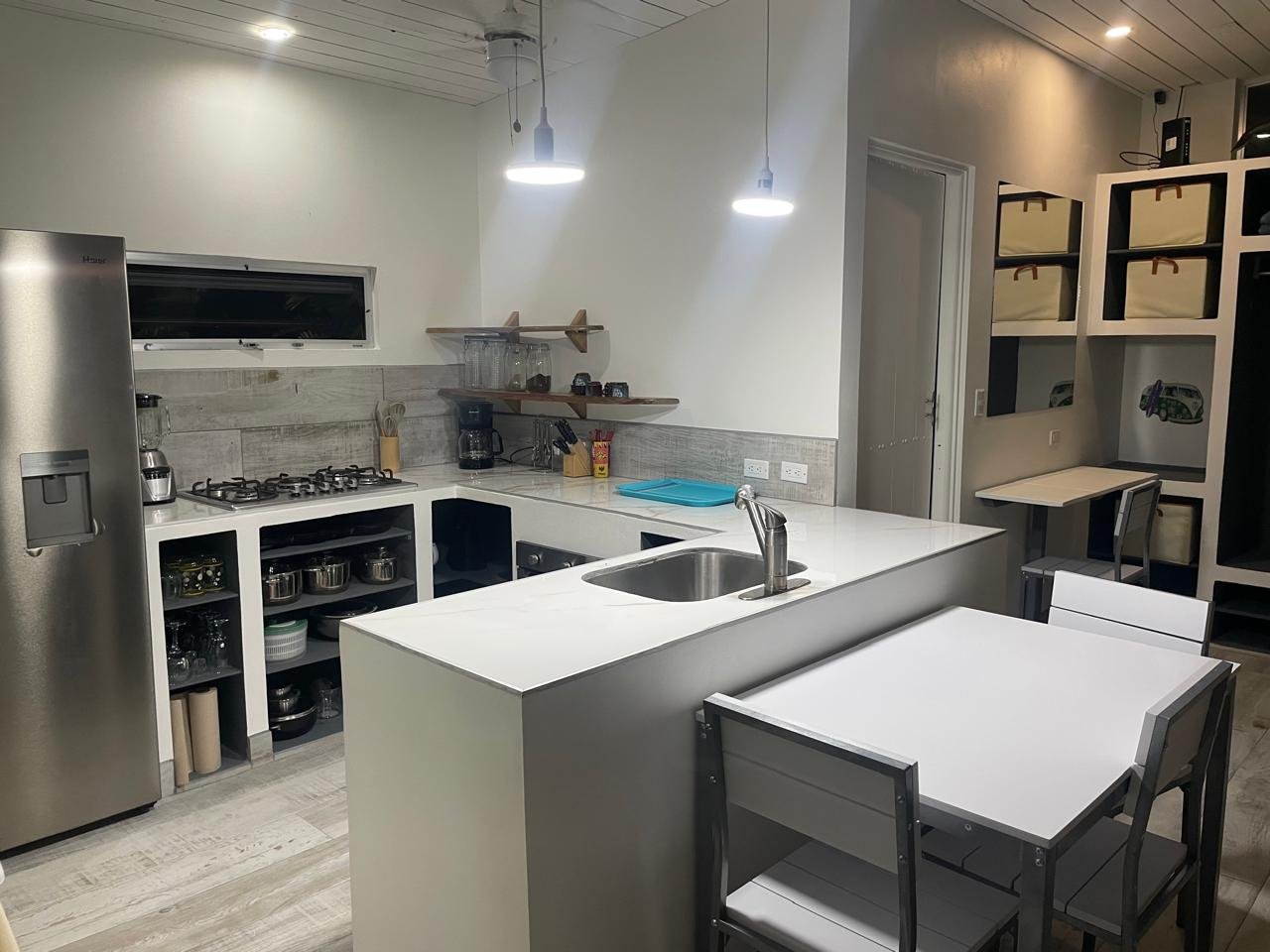 The property consists of a beautiful, modern open concept self sufficient studio home with all modern appliances and a very convenient extra bed hidden under the main bed to sleep four.