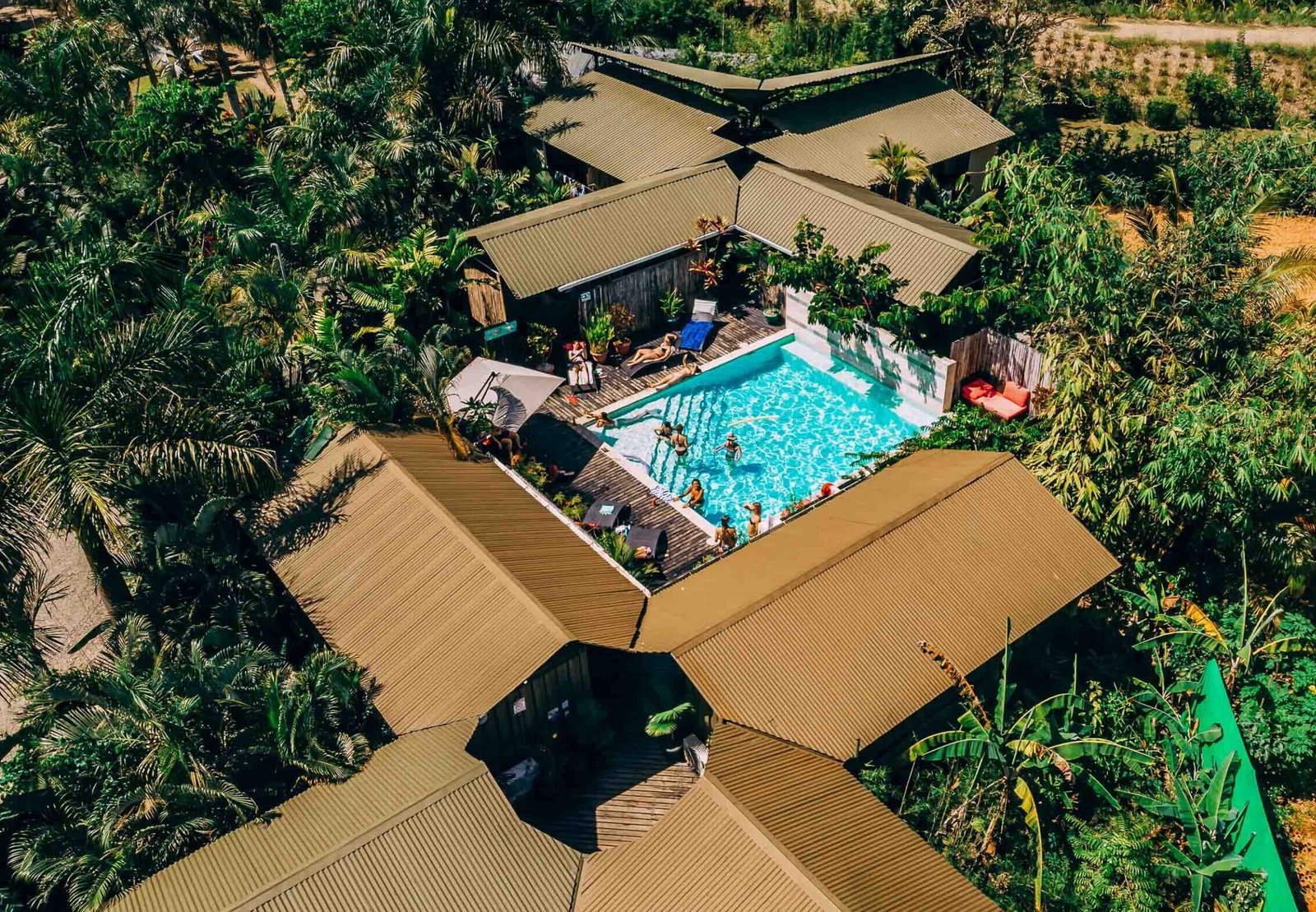 The property spans nearly half an acre and features 12 guest rooms in two configurations, 5 staff rooms, an outdoor semi-enclosed kitchen, a yoga studio with capacity for aerial practices, a boutique retail space that doubles as reception, a pool and pool deck, elevated walkways, lush gardens, and numerous lounge areas for relaxation. Additional amenities include laundry, storage, and equipment areas, fully equipped to service both the property and retreats.