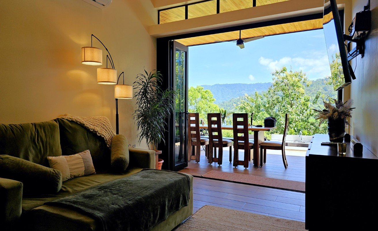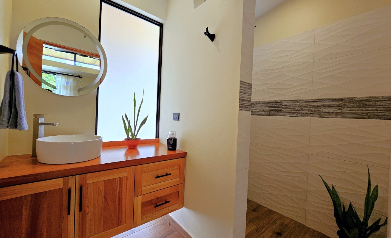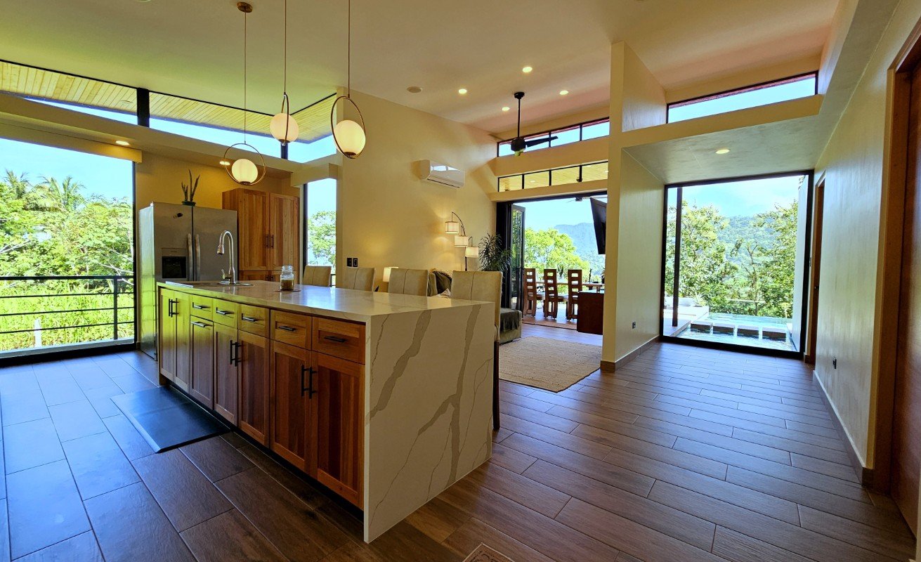 This thoughtfully designed home, completed in 2024, sits tucked into the peaceful and green neighborhood of La Unión — just five minutes from the vibrant town of Uvita and seven minutes from the shores of Marino Ballena National Park and the iconic Whale Tail beach.
