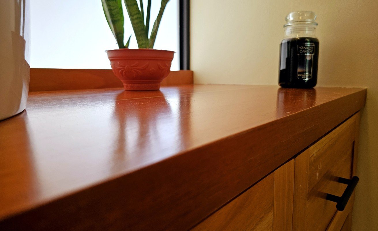 Porcelain wood-look floors, custom wood furniture
