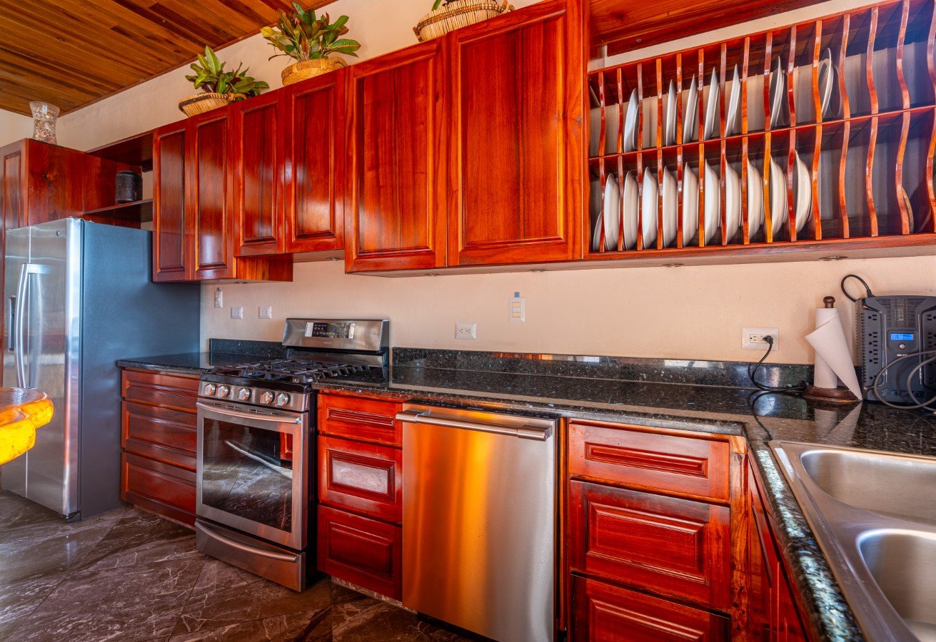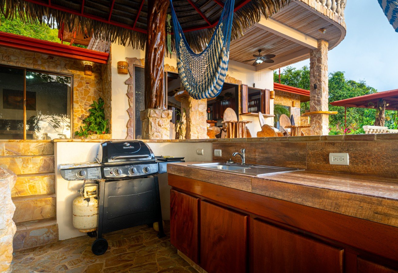 Every detail of Castillo Puesta del Sol has been thoughtfully crafted to enhance the natural beauty that surrounds it. Handcrafted Cristobal hardwood cabinetry, pearl blue granite countertops, and state-of-the-art appliances combine to create a kitchen that is both functional and beautiful. From here, your gaze is drawn through the house, across the infinity pool, and out to the endless expanse of ocean beyond.