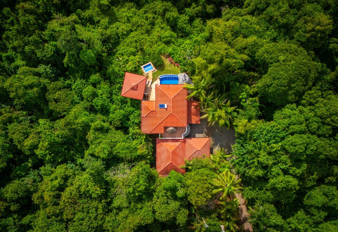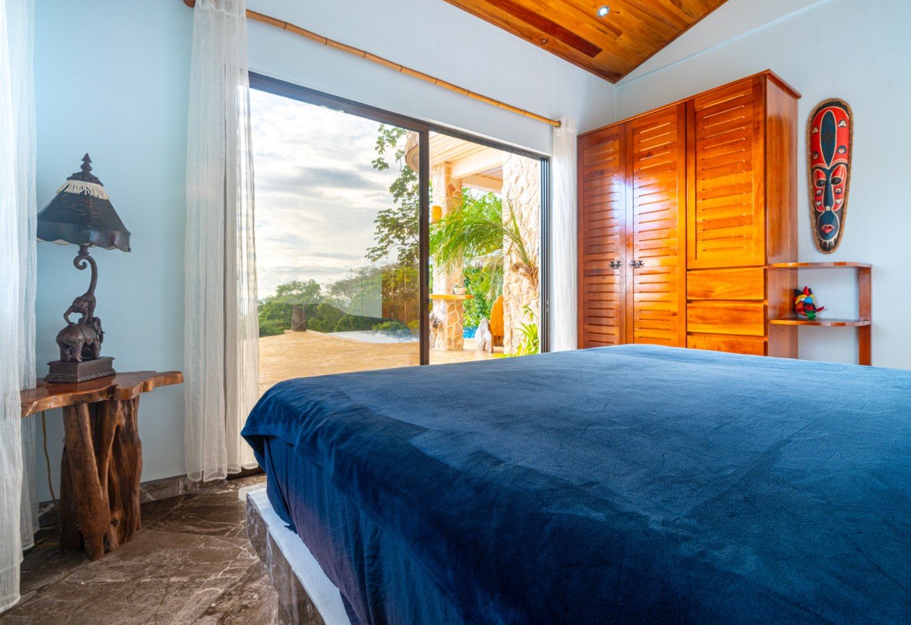 The estate features four king-sized bedrooms, each with its own ensuite bathroom, offering luxurious accommodations for you and your guests. The master suite, with its heart-shaped purpleheart hardwood headboard and panoramic glass doors, feels as though it is floating above the jungle canopy. From your elevated king-sized bed, you can watch the ocean stretch out before you, while the soft rustle of leaves and the distant crash of waves lull you into a peaceful slumber.