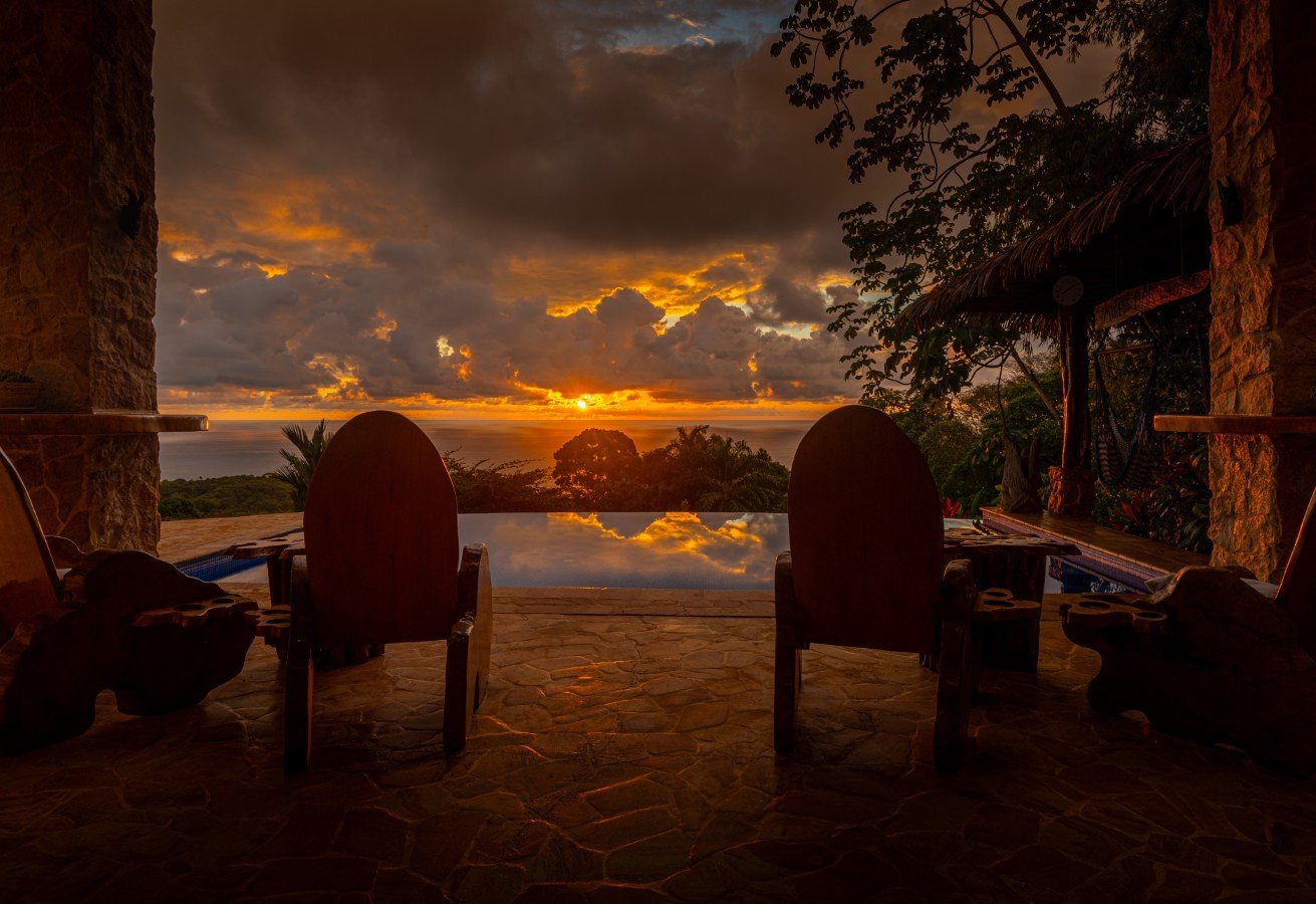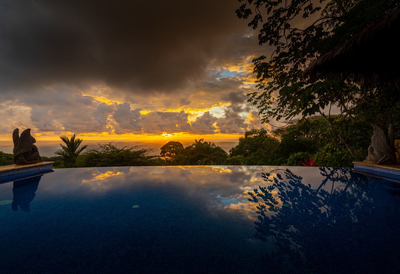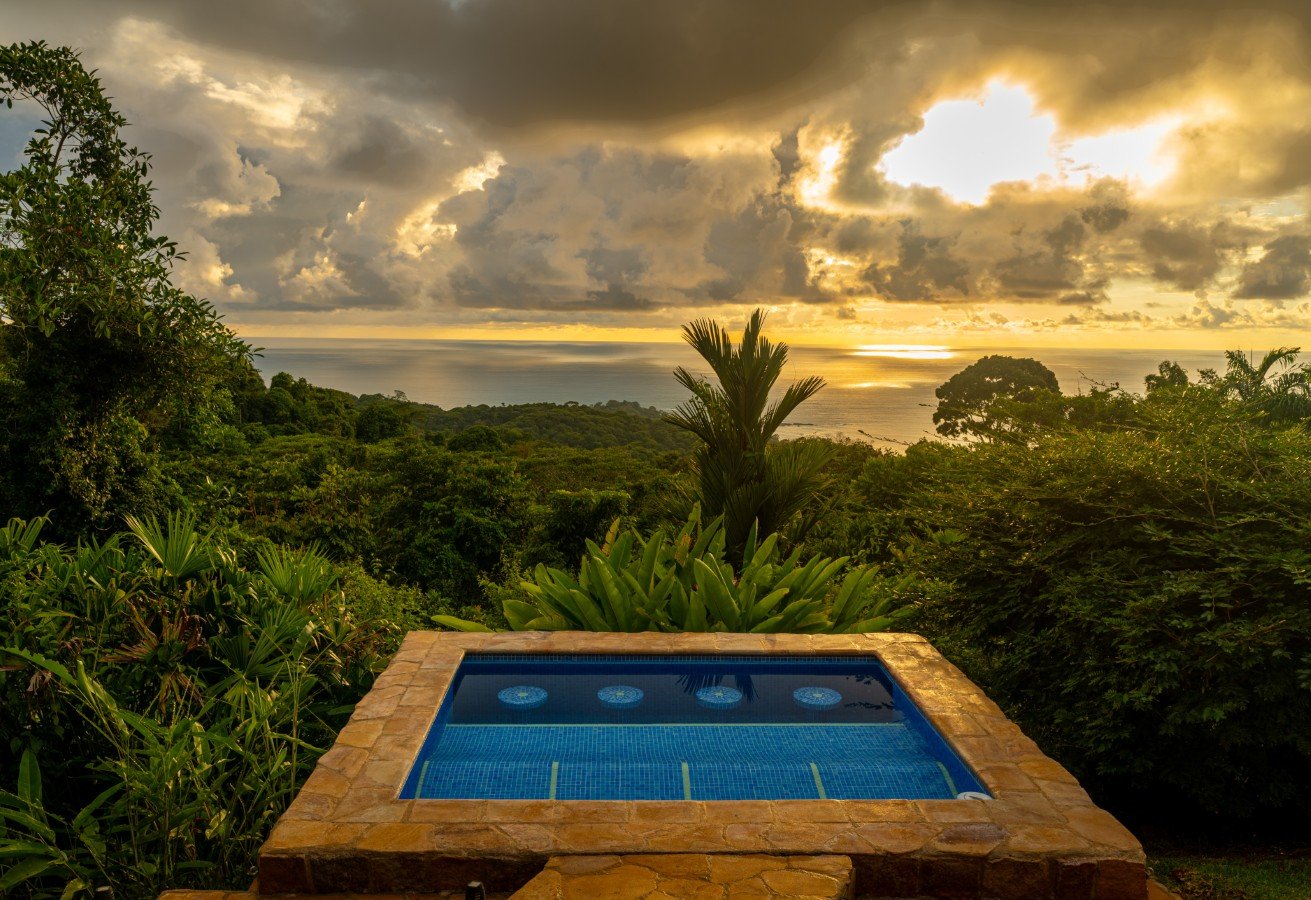 Set on a sprawling 5-acre estate, Castillo Puesta del Sol is perched high above the turquoise waters of Dominicalito Bay. From this privileged vantage point, you are treated to uninterrupted ocean views that stretch as far as the eye can see, from the dramatic coastline to the distant horizon where the sky meets the sea. Here, every evening, the sun dips into the ocean, painting the sky with hues of orange, pink, and gold, a nightly spectacle that is yours to savor in complete privacy.