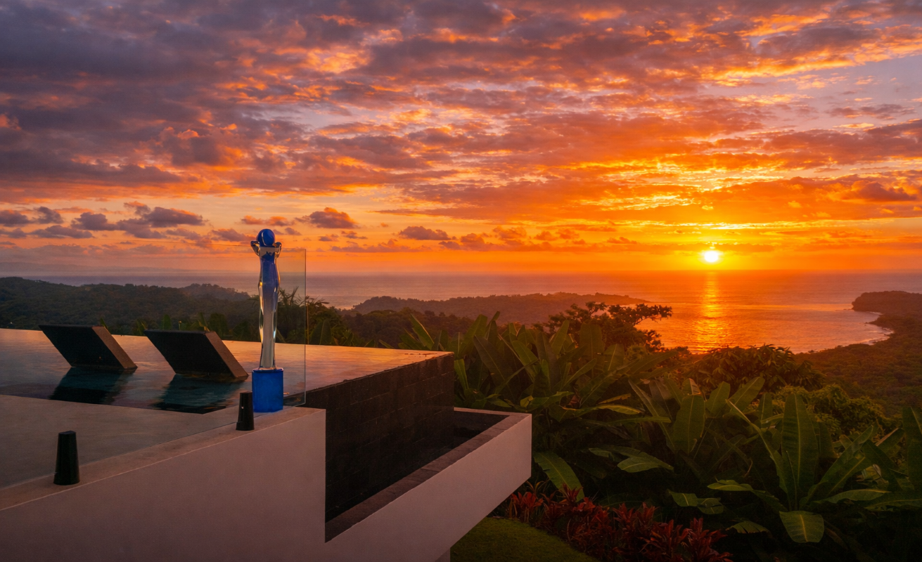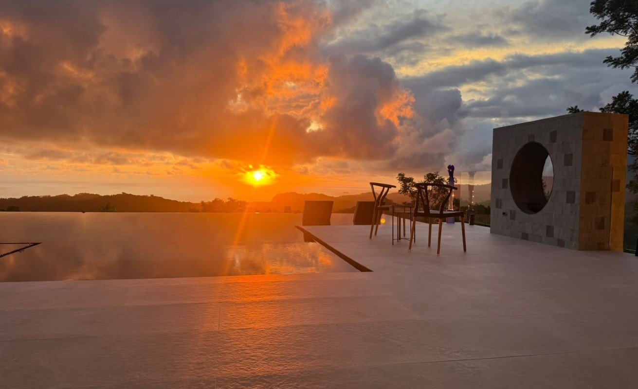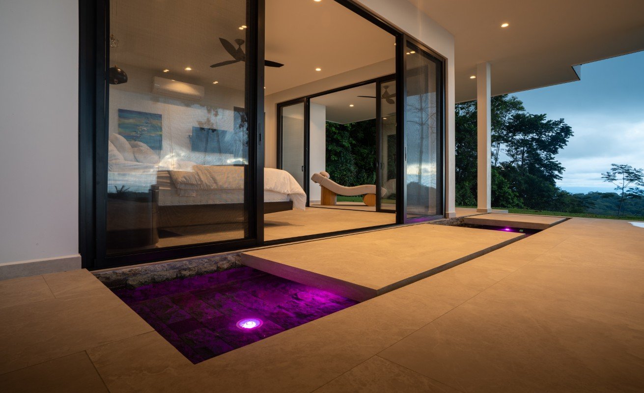 Commanding 280-degree panoramic ocean views, Casa Armonía Elements gazes across the deep blue Pacific, taking in three distinct whitewater coastlines, Caño Island, and the iconic Whale’s Tail formation at Marino Ballena National Park. Every evening, the sky bursts into color with year-round sunsets, while the twinkling lights of Ojochal shimmer below, painting a scene of magic and mystery.