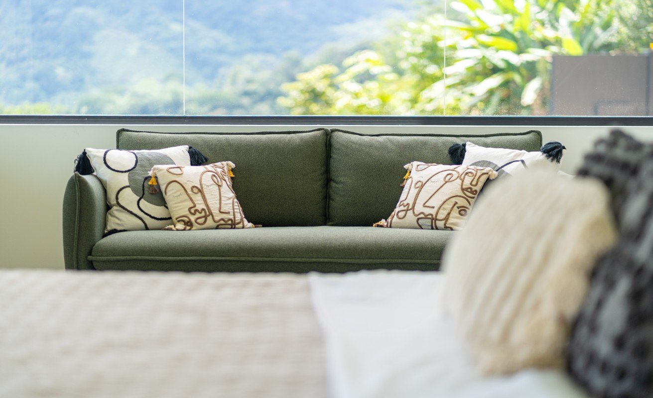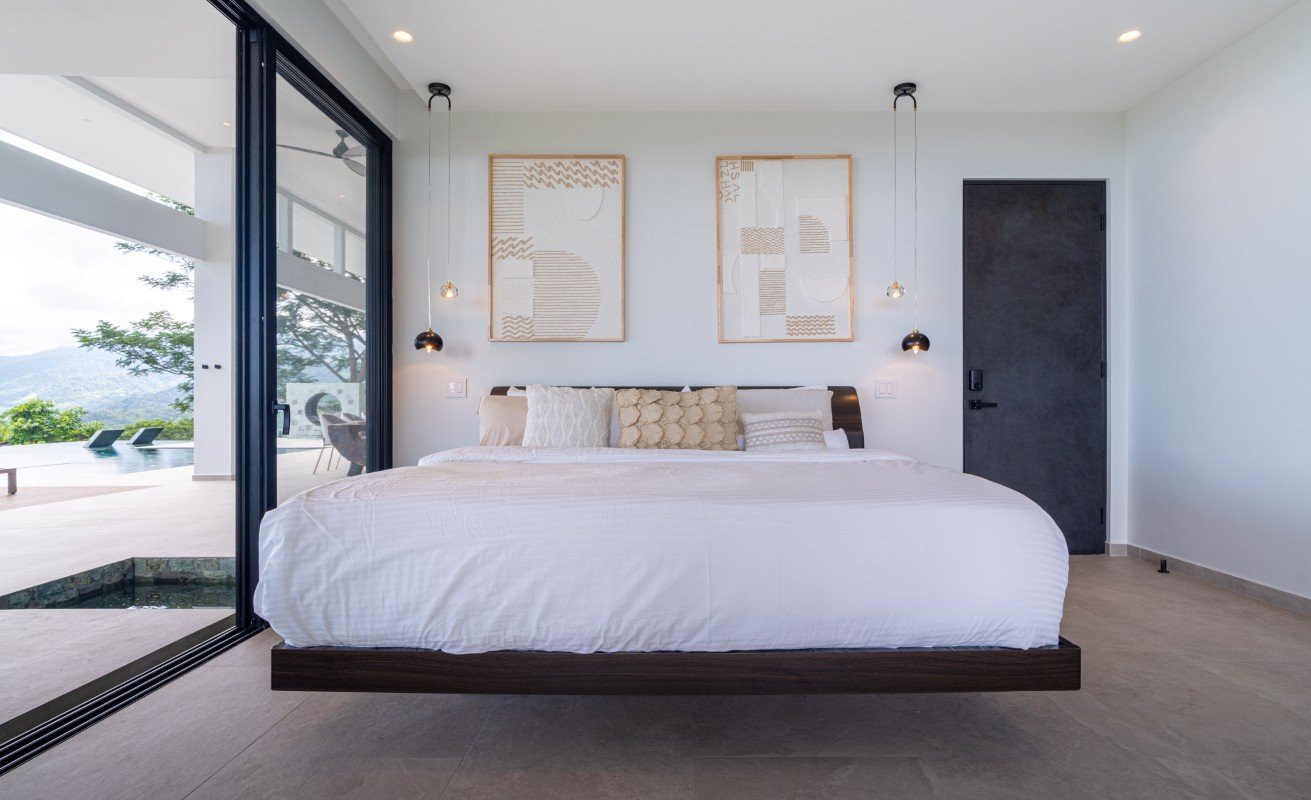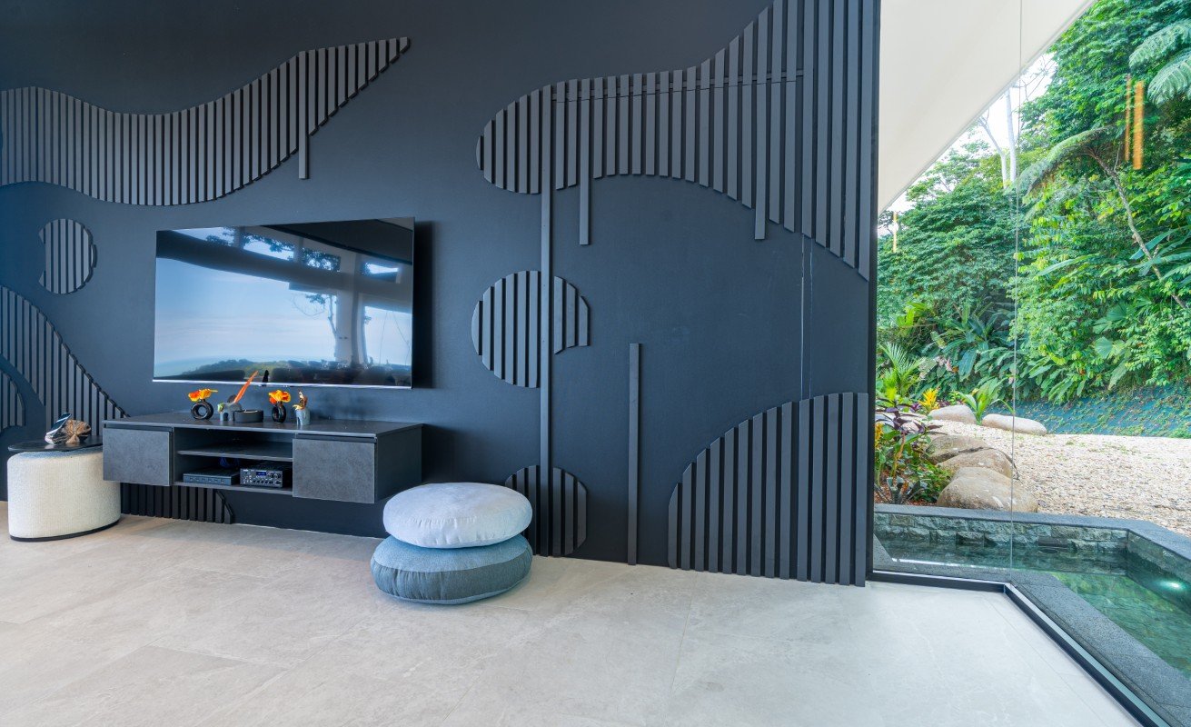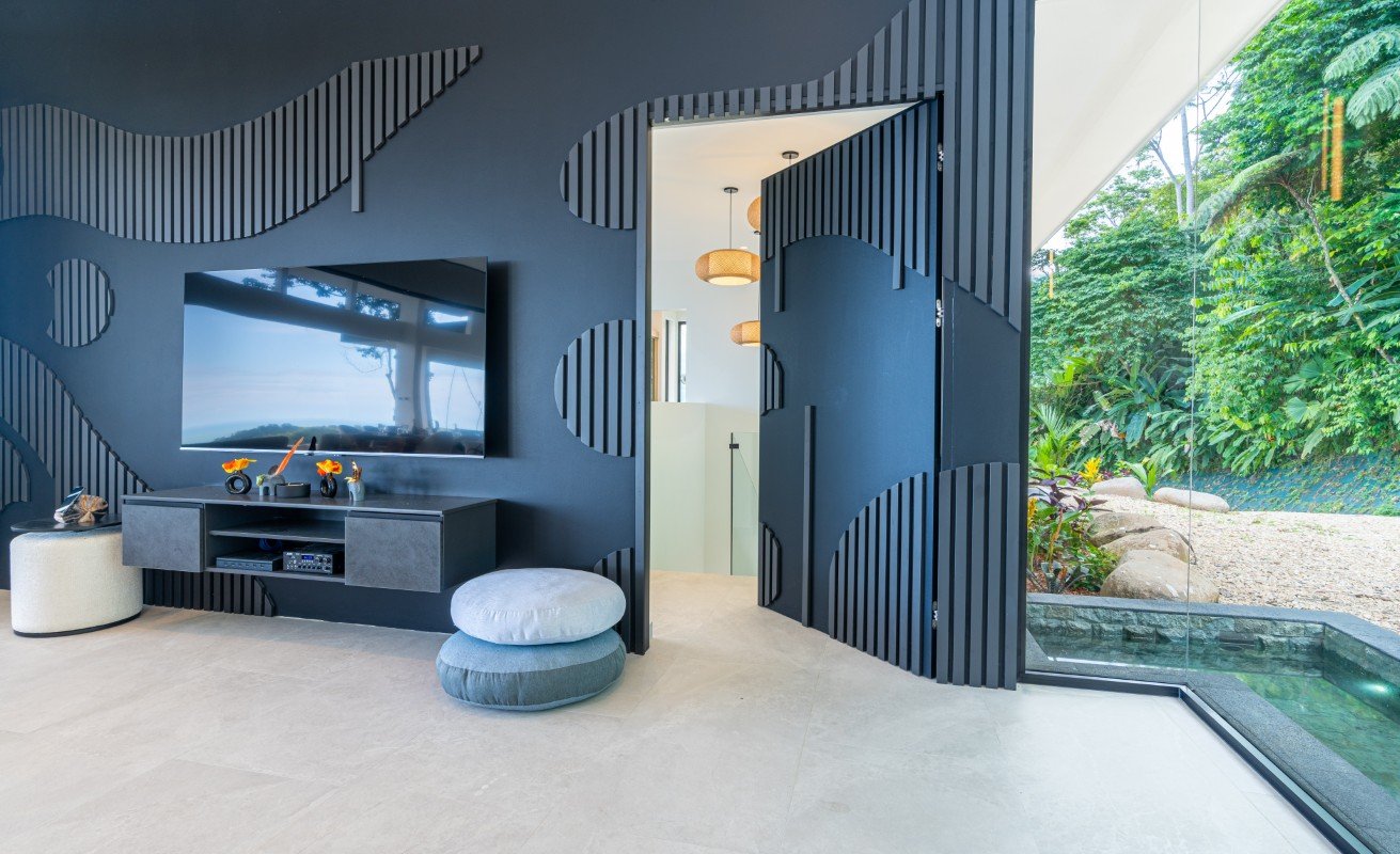 Commanding 280-degree panoramic ocean views, Casa Armonía Elements gazes across the deep blue Pacific, taking in three distinct whitewater coastlines, Caño Island, and the iconic Whale’s Tail formation at Marino Ballena National Park. Every evening, the sky bursts into color with year-round sunsets, while the twinkling lights of Ojochal shimmer below, painting a scene of magic and mystery.