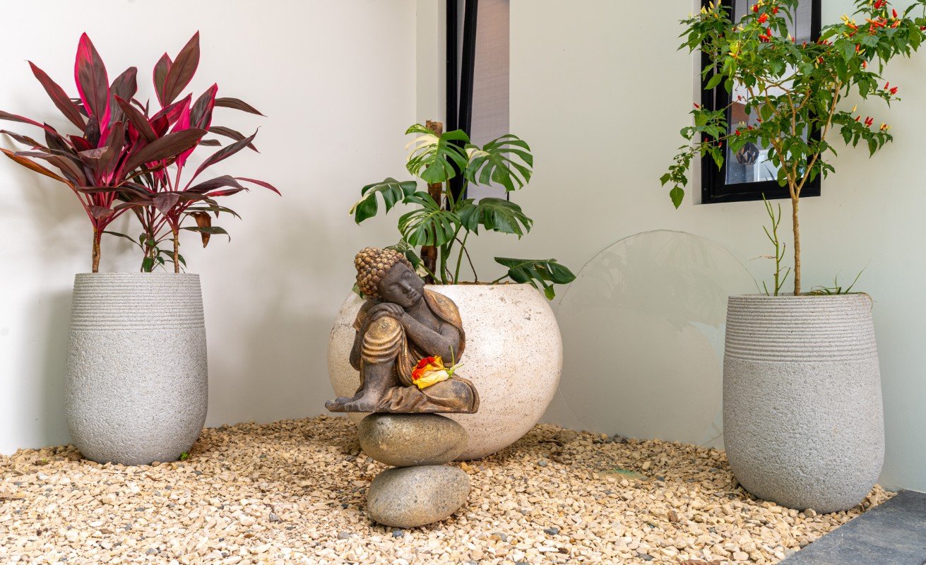 - Water dances through fountains and features, echoing the nearby waterfall and reflecting the soul.