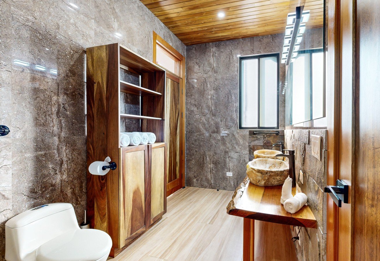 Beyond the villa’s exceptional features, the property includes a covered carport with ample storage space and a substantial 10,000-liter water reserve tank. The expansive 1.25-acre estate is a haven for nature enthusiasts, home to a majestic Guanacaste tree and a regular parade of diverse wildlife, including playful white-faced monkeys and vibrant toucans. Ideally situated within Vista Dominical Estates, a boutique gated community offering scenic hiking trails, a tranquil fishing pond, and even a convenient heli-pad, Villa Flor de la Vida is a mere 5-minute drive from the vibrant heart of Dominical, where an array of delightful restaurants, charming cafes, unique shops, essential pharmacies, and the popular Friday farmers market await. For nature lovers, the property also offers the unique opportunity to hike down to the flowing waters of the Baru River!