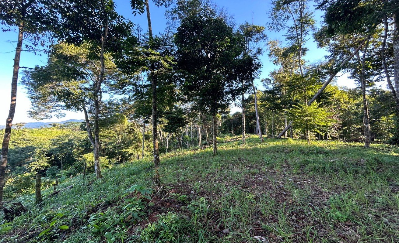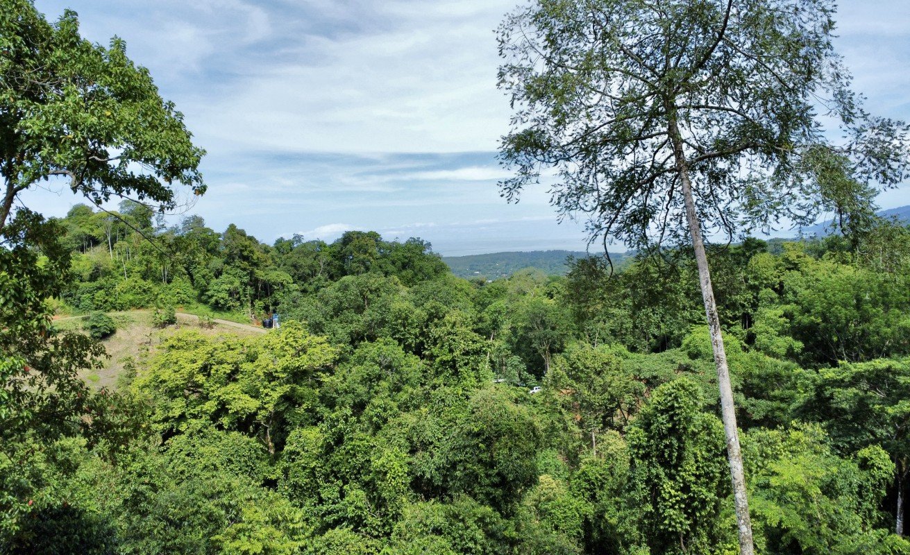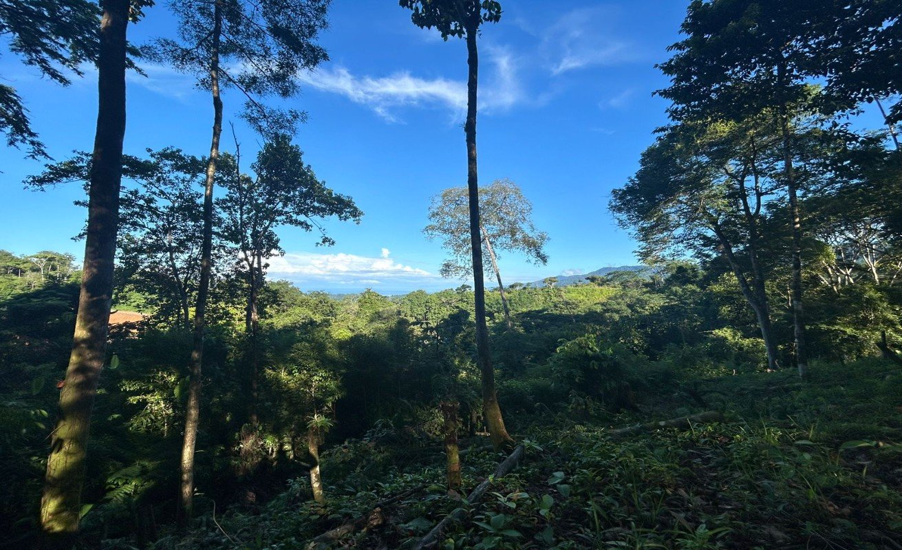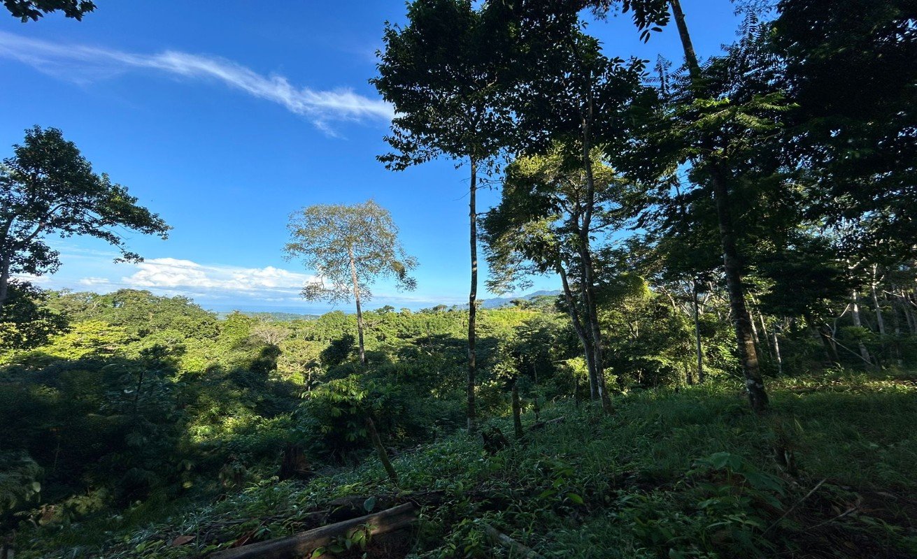 This property in Uvita, Osa, Costa Rica, covers a 20,000 square meter (5-acre) area. It's near the popular tourist area of Uvita but still surrounded by a primary forest, just 15 minutes from the highway on a decent road. The property has large areas suitable for building, offering impressive views of the Pacific Ocean and the mountain range. It's an ideal location for a home, family compound, or investment in the hospitality industry.