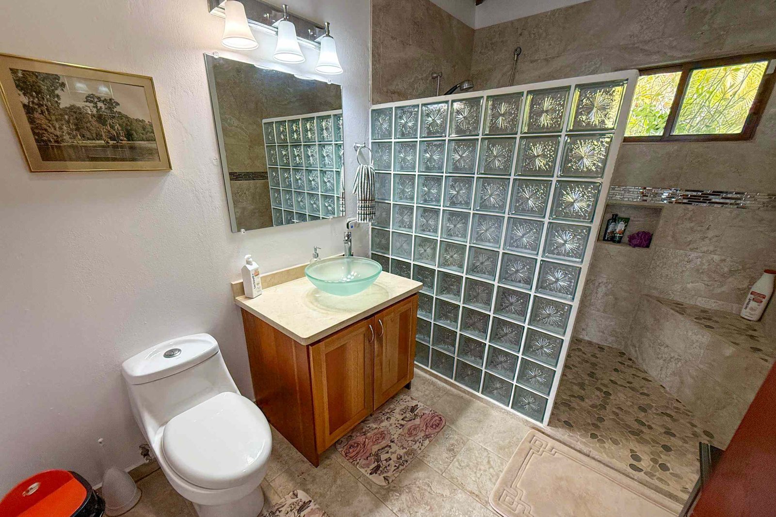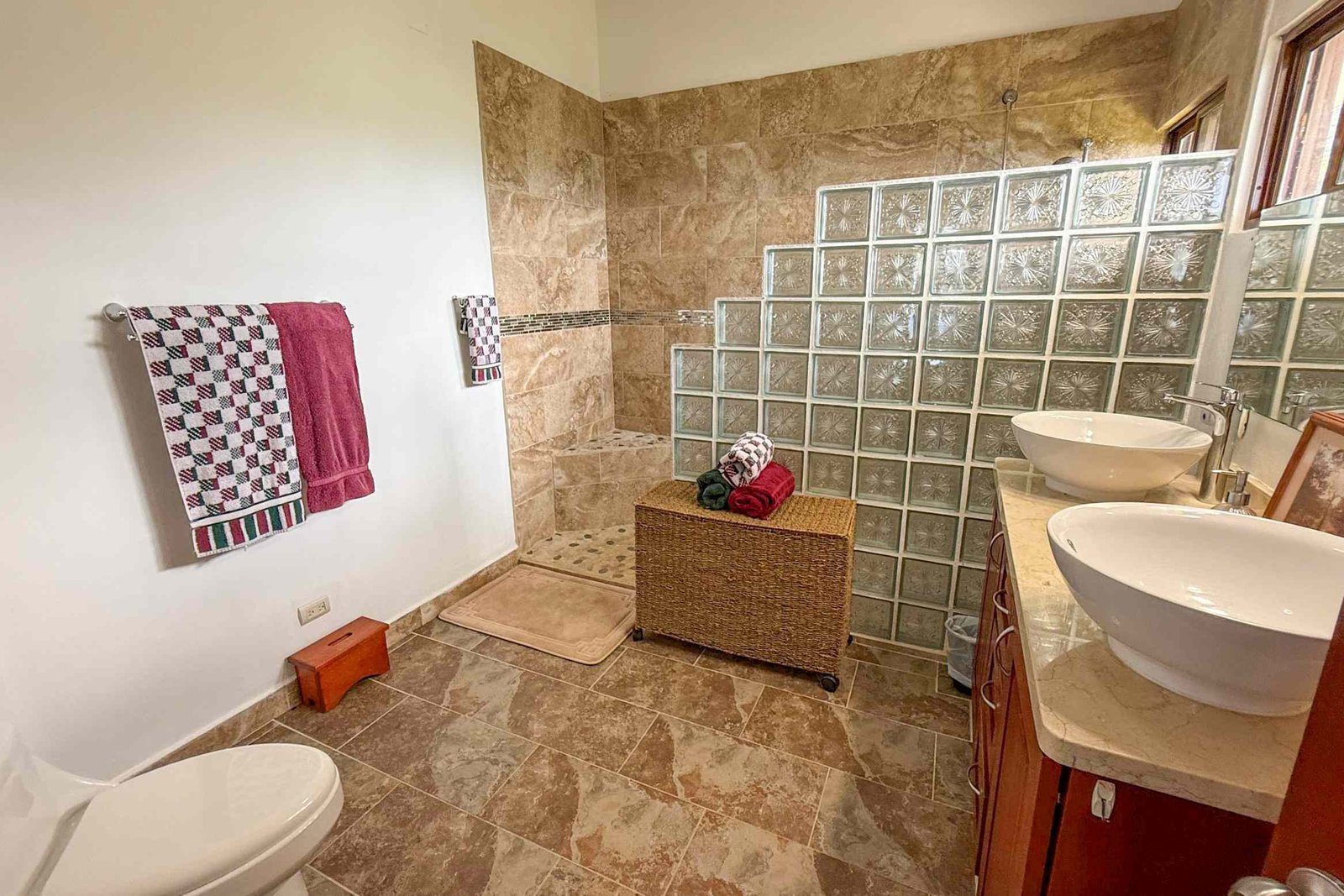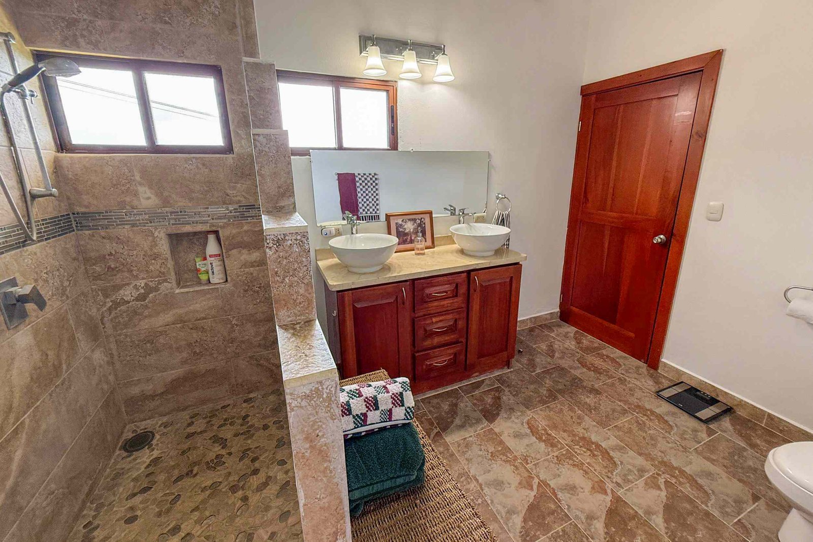 - Master Suites with a View: Two generously-sized bedrooms boast private ensuite full bathrooms, gorgeous local hardwood furnishings, spacious walk-in closets, and direct access to the terrace, ensuring stunning ocean views from the moment you wake. Bathrooms have been beautifully decorated with beautiful stone and tilework.