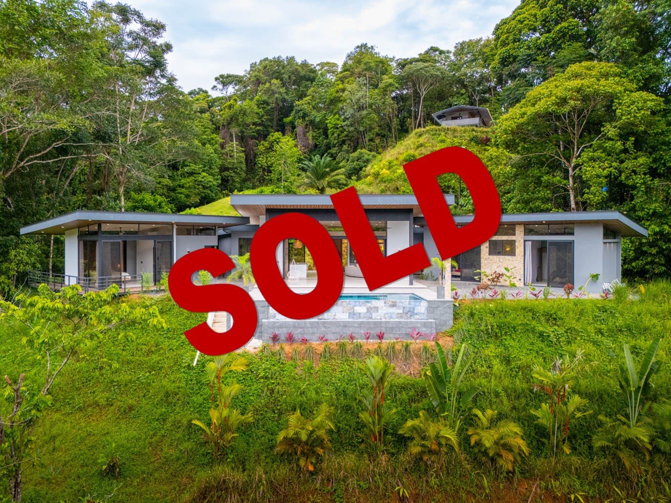 FIRE SALE!!! A BRAND NEW, Stunning & Modern End-Of-The-Street Jungle Home with Multiple Plantels, MAJESTIC Mountain Views and Tropical Fruit Orchard on a BIG 4.7-Acre Rainforest & River Lot in Ojochal’s Exclusive Finca Marañon Neighborhood