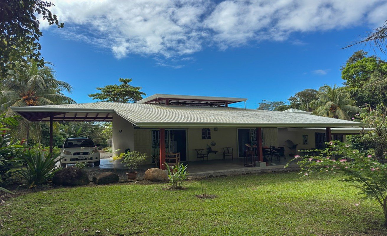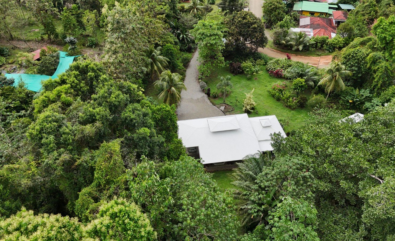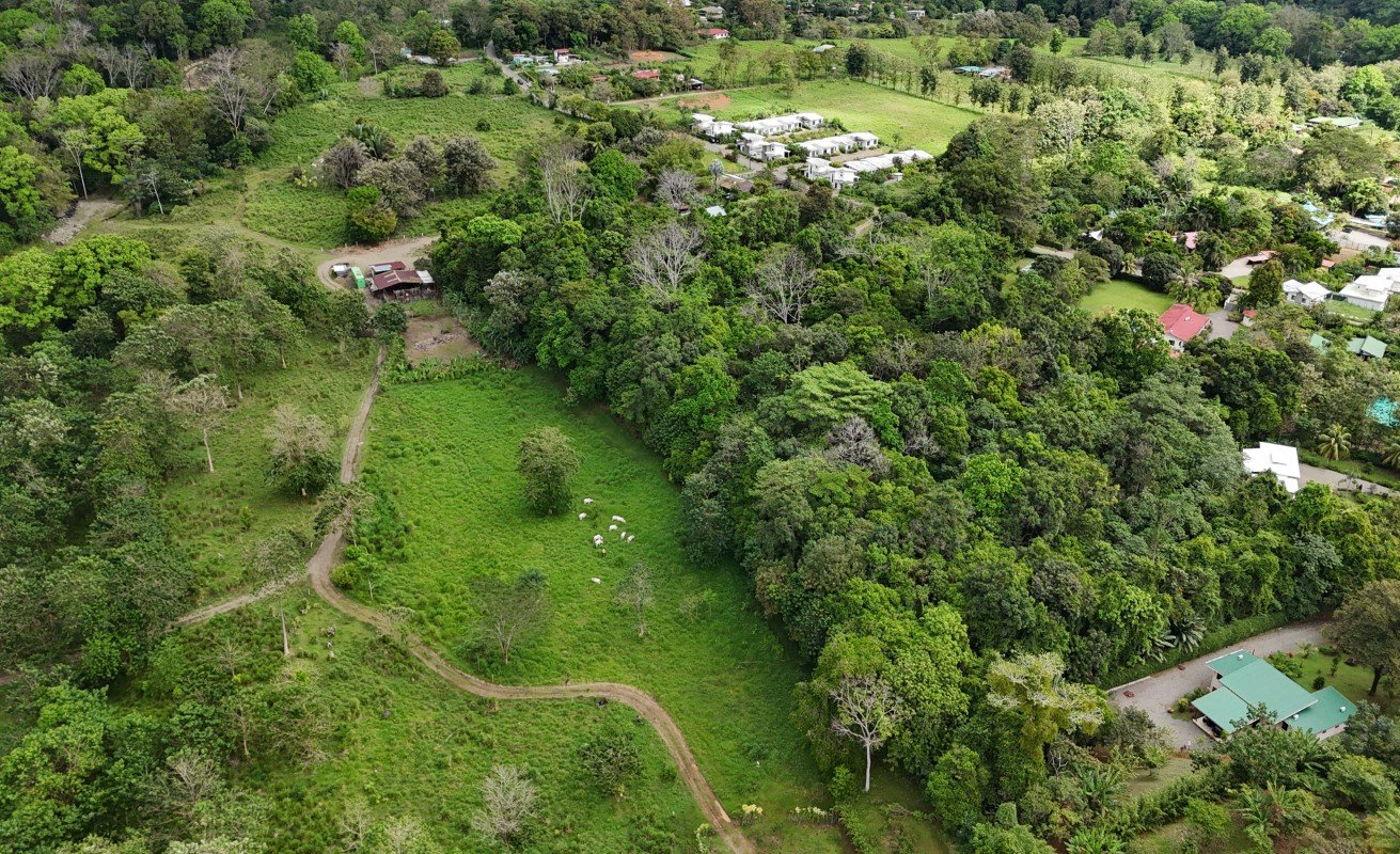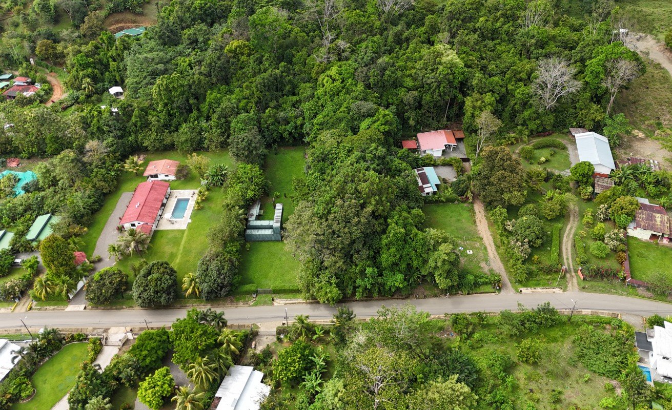 A unique opportunity of 2.93 HECTARES of flat developable land with a 2 Bedroom and 2 bathroom home with original cachet in the heart of Ojochal without the need of a 4x4 vehicle and the possibility of mountain views.