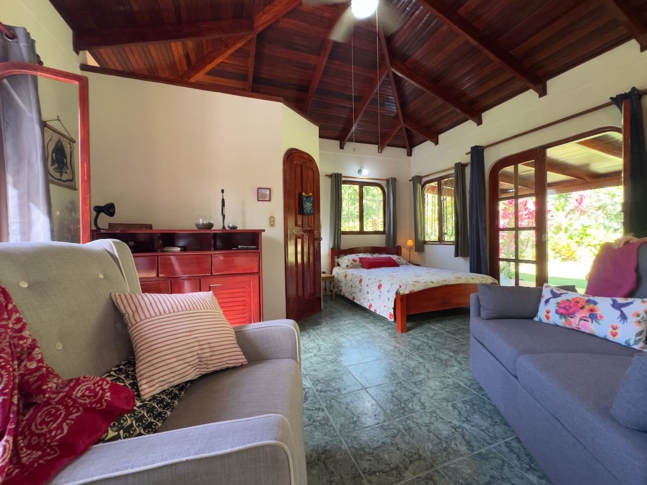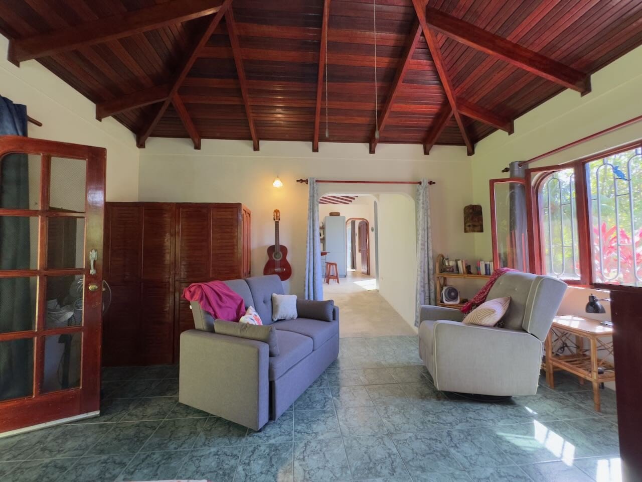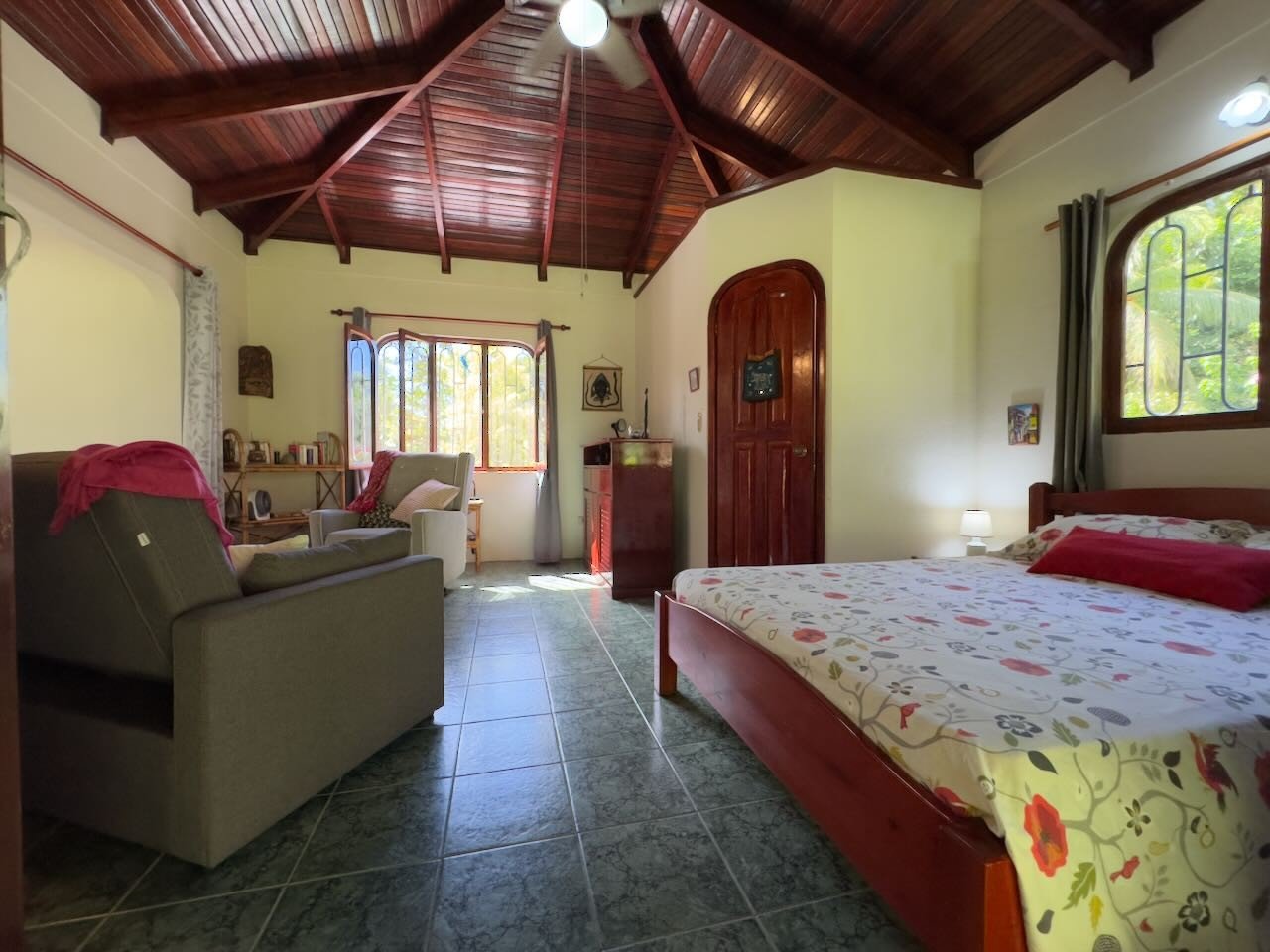 From there there are eight beaches within striking distance beginning with Playa Tortuga just a kilometre west. To the north of the property one kilometre up the pavement is Batheable Rio Tortuga and following it’s bridge dirt roads leading up to the mountain with it’s Rivers and waterfalls perfect for Hiking, Biking, Birdwatching, Dog walking and more.The Property and Home