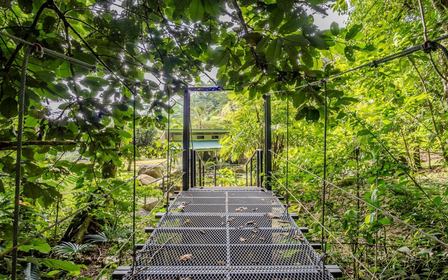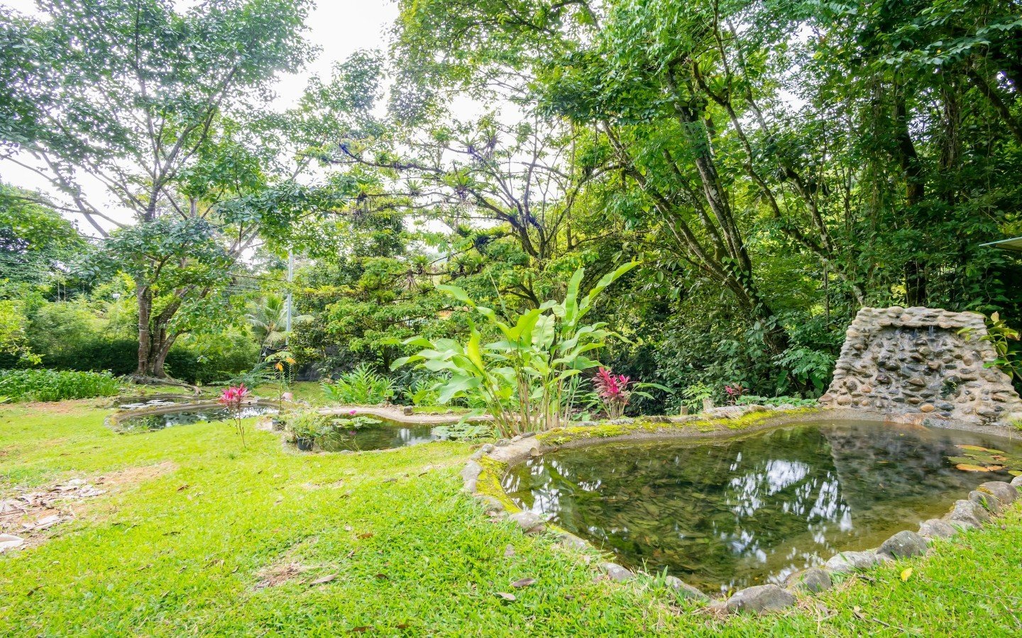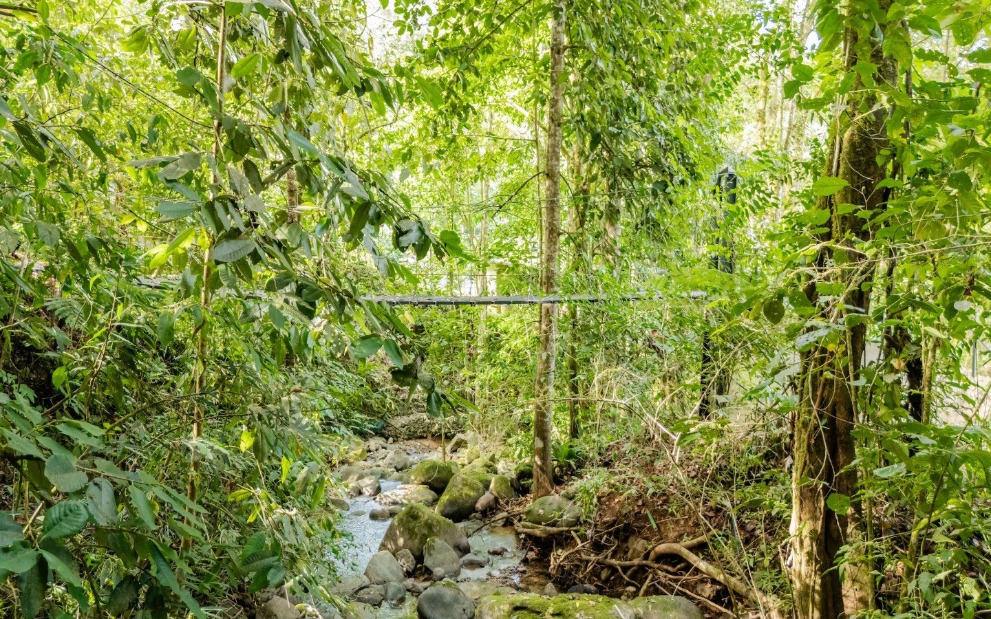 At the heart of the property, a breathtaking 30-foot waterfall spills into your private river, crossed by a pedestrian suspension bridge. Multiple serene ponds reflect the sky, and established hiking trails wind through fertile gardens, mature fruit orchards, and five acres of thriving reforestation — now in its third year — planted with over 1,000 native trees from 13 species to restore vital wildlife corridors.