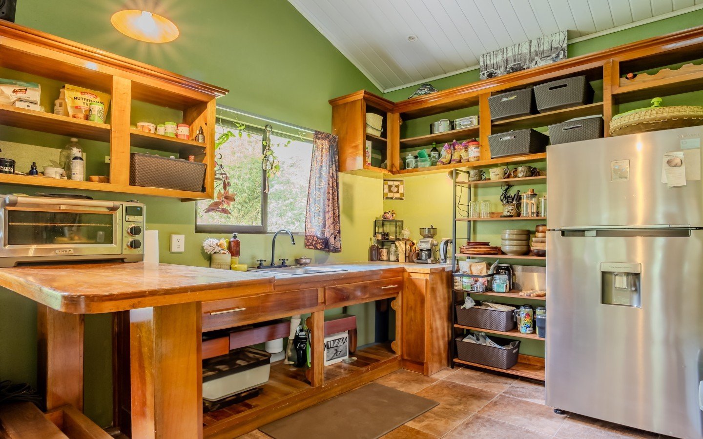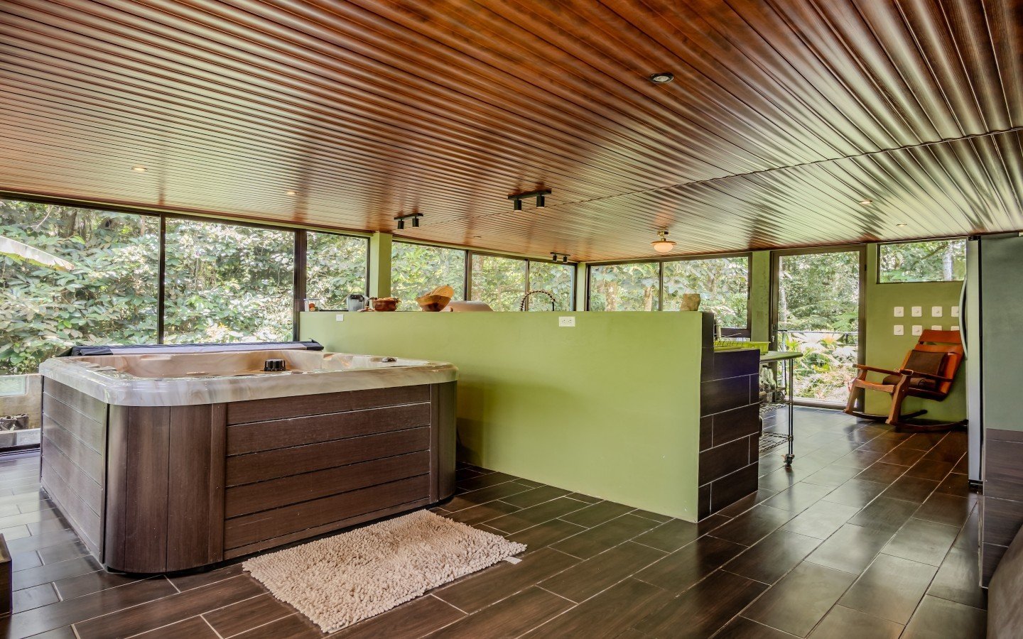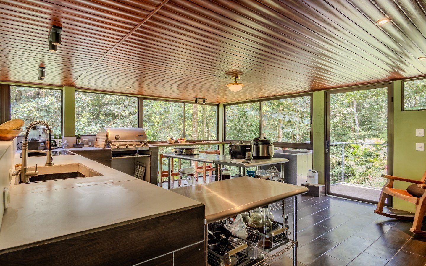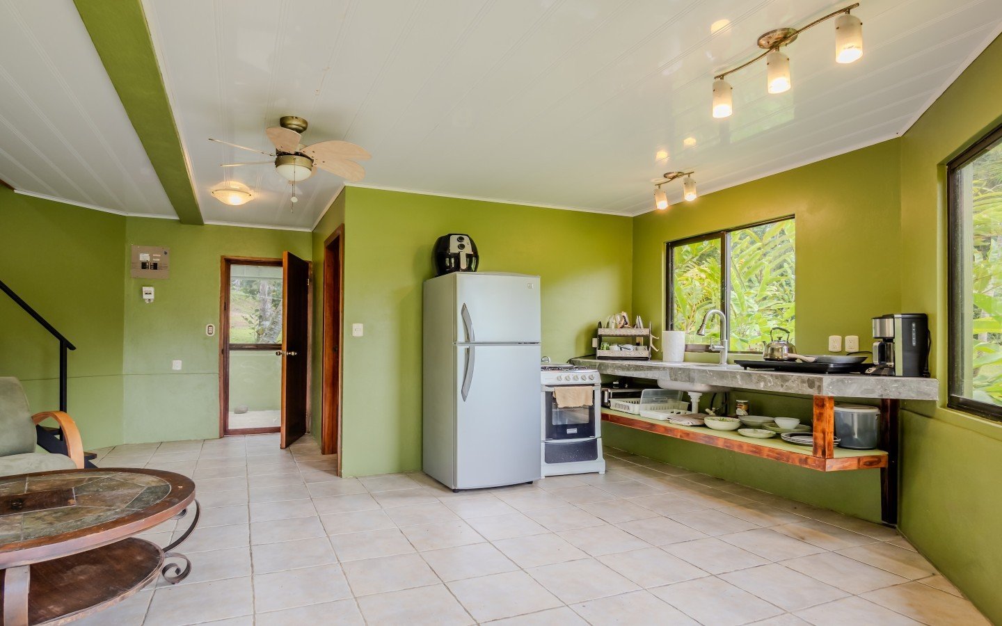 – Main home: 2,300 sq ft, 2 bed / 1 bath, remodeled in 2022, with direct waterfall views, jacuzzi, dry room, and an open-air chef’s kitchen. Equipped with a Cuisinart Gallery Collection oven with multifunction capabilities including steam bake, air fry, and convection bake, plus a 4-burner induction cooktop and propane grill. Additional café kitchen on the main floor.