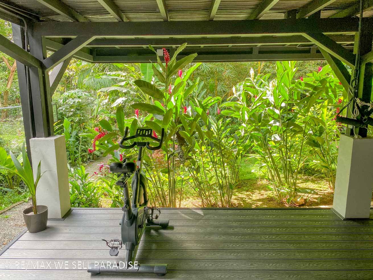 - 4th bedroom with private deck, exercise bike, outdoor shower, and adjacent bathroom