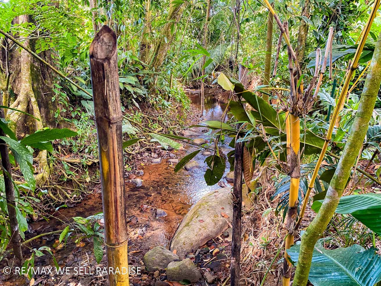 - Gravel and stepping-stone paths leading to a peaceful, unnamed creek surrounded by jungle