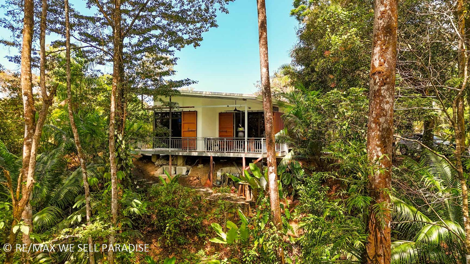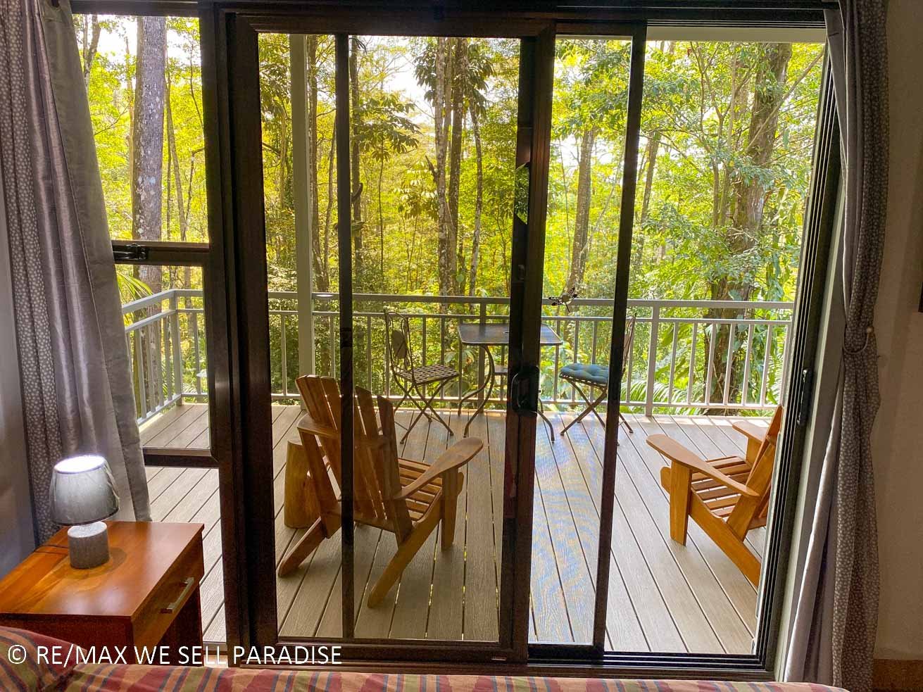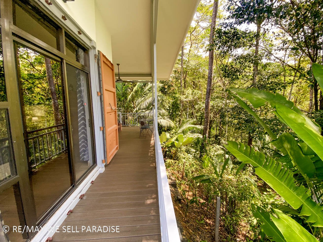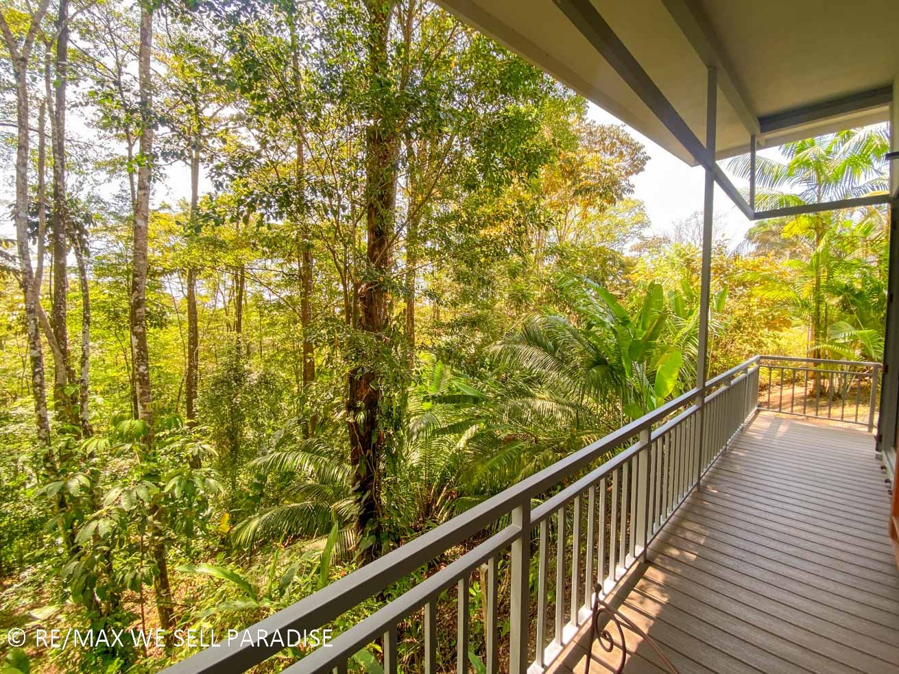 The beautiful house hangs over a steep jungle-covered ravine – and a covered wrap-around patio takes full advantage of this elevated location. As you relax on the patio, you are looking straight into the canopies of a towering tropical rainforest. Two large bedrooms with full ensuites, plentiful storage, workspaces, TVs and large windows offer direct patio access via large sliding glass doors. The central area of the home is airy & spacious with high ceilings, bright walls and an outstanding kitchen which will bring out the inner chef in everyone. The kitchen’s storage & counter space is simply outstanding, the breakfast bar offering even more space to cook, eat or relax with a hot or cold drink. Across the kitchen is a spacious, lofty area that can be converted into a living space, dining room, functional / workout area, and even an indoor relaxation garden.
