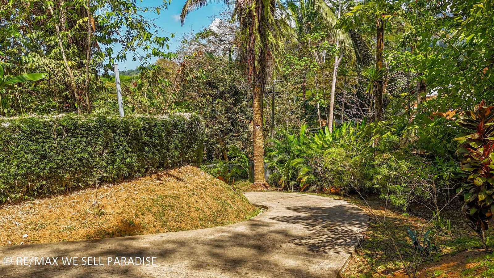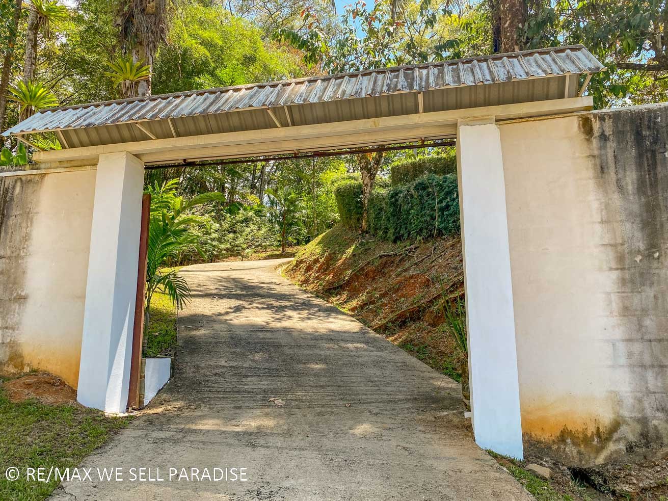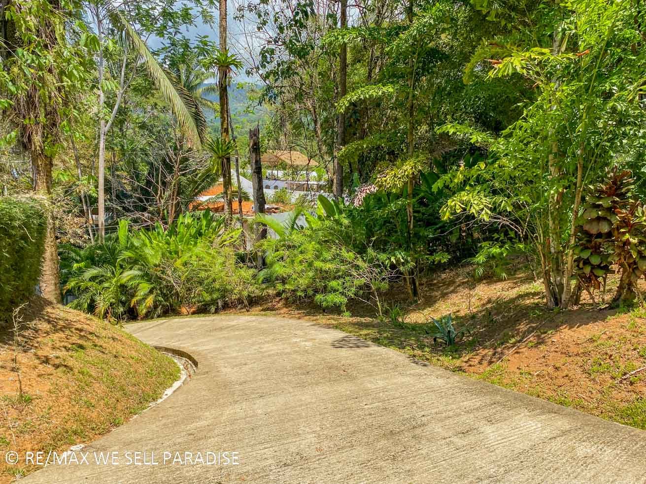 From the Costanera Highway—the main route connecting San José with the Southern Pacific—a quick 400m drive brings you to the front gates of the property where a concrete driveway completes the journey. The drive is a serene tour through a leafy neighborhood which makes you forget that the hassle & excitement of Uvita is, literally, a few minutes away. Because the house sits at about 50 meter elevation ASL, the drive is easy and gentle.